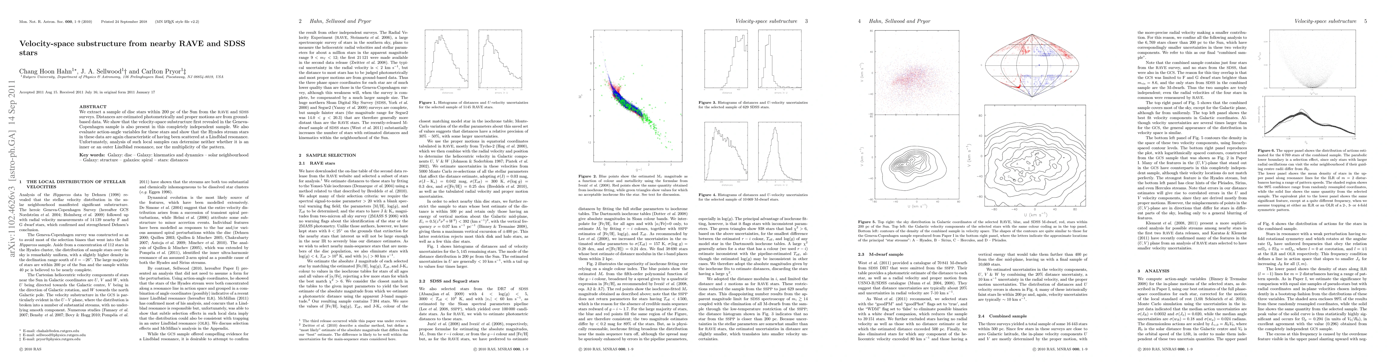 We extract a sample of disc stars within 200 pc of the Sun from the RAVE and SDSS surveys. Distances are estimated photometrically and proper motions are from ground-based data. We show that the velocity-space substructure first revealed in the Geneva-Copenhagen sample is also present in this completely independent sample. We also evaluate action-angle variables for these stars and show that the Hyades stream stars in these data are again characteristic of having been scattered at a Lindblad resonance. Unfortunately, analysis of such local samples can determine neither whether it is an inner or an outer Lindblad resonance, nor the multiplicity of the pattern.