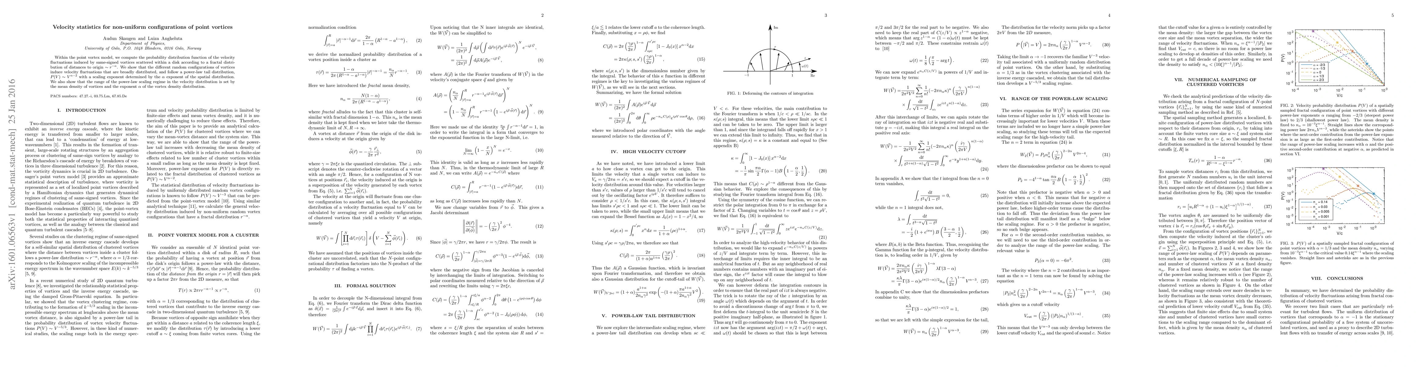 This paper investigates velocity fluctuations in a point vortex model where vortices are distributed fractally within a disk. The study reveals that these fluctuations follow a power-law distribution, with the scaling exponent dependent on the fractal dimension of the vortex distribution. The range of this power-law regime is influenced by the mean vortex density and the distribution's fractal exponent.