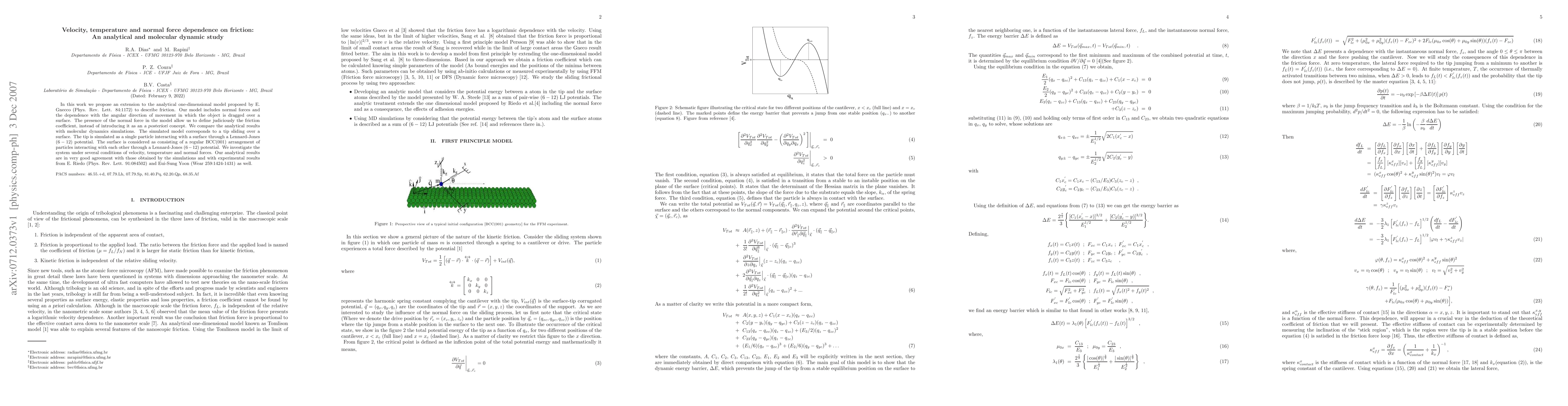 This paper extends an analytical model to describe friction considering normal forces and velocity/temperature dependencies, validated through molecular dynamics simulations of a tip sliding over a surface. The results show strong agreement with both simulations and experimental data.