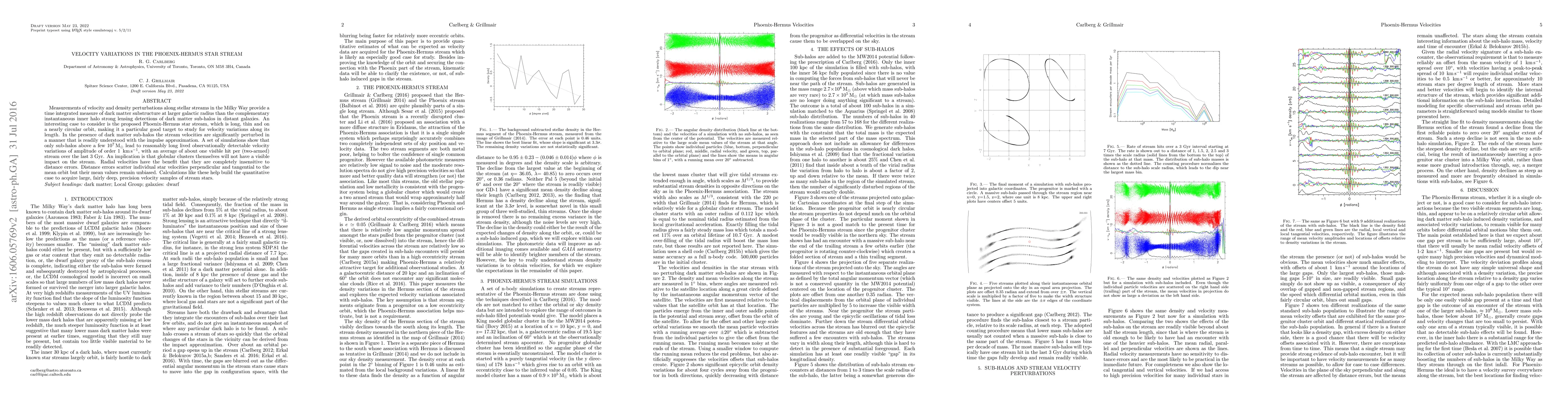 This paper investigates velocity variations in the Phoenix-Hermus star stream to infer the presence of dark matter sub-halos. Simulations suggest that only sub-halos above 10^7 M_sun can cause detectable velocity perturbations, indicating globular clusters have negligible impact.
