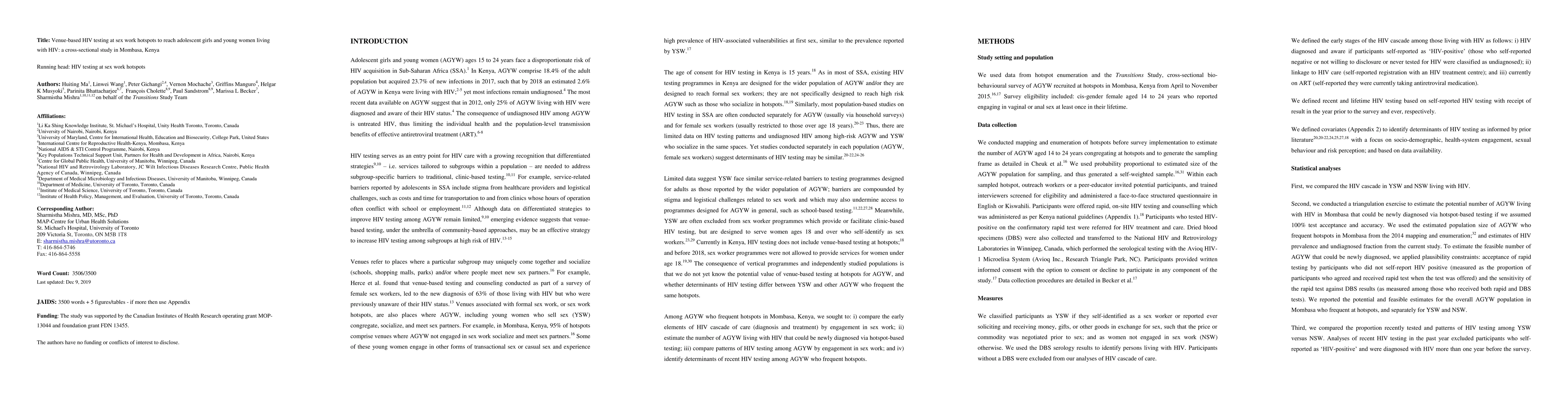 A study in Mombasa, Kenya found that hotspot-based HIV testing could diagnose 450-627 new cases among adolescent girls and young women, reducing the undiagnosed fraction from 71.6% to 20.2%. This approach could fill gaps in traditional HIV prevention and testing services for this vulnerable population.