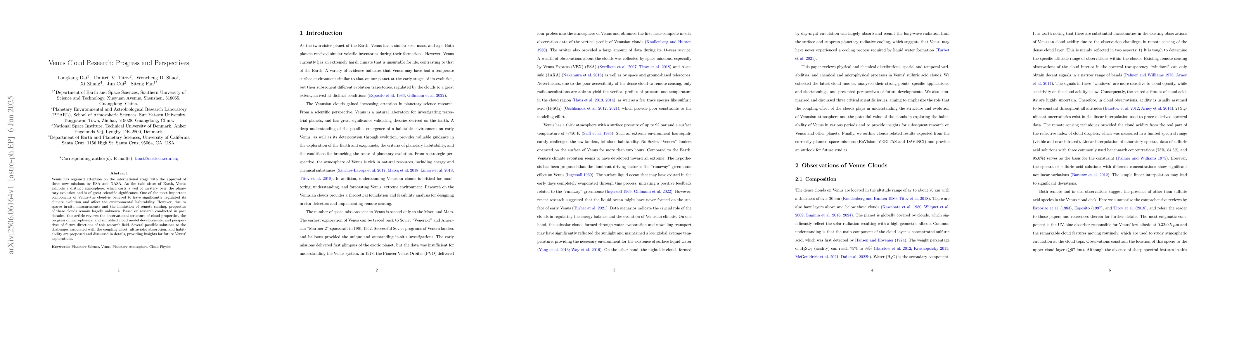 Venus has regained attention on the international stage with the approval of three new missions by ESA and NASA. As the twin sister of Earth, Venus exhibits a distinct atmosphere, which casts a veil of mystery over the planetary evolution and is of great scientific significance. One of the most important components of Venus-the cloud-is believed to have significantly regulated its climate evolution and affect the environmental habitability. However, due to sparse in-situ measurements and the limitation of remote sensing, properties of these clouds remain largely unknown. Based on research conducted in past decades, this article reviews the observational structure of cloud properties, the progress of microphysical and simplified cloud model developments, and perspectives of future directions of this research field. Several possible solutions to the challenges associated with the coupling effect, ultraviolet absorption, and habitability are proposed and discussed in details, providing insights for future Venus' explorations.