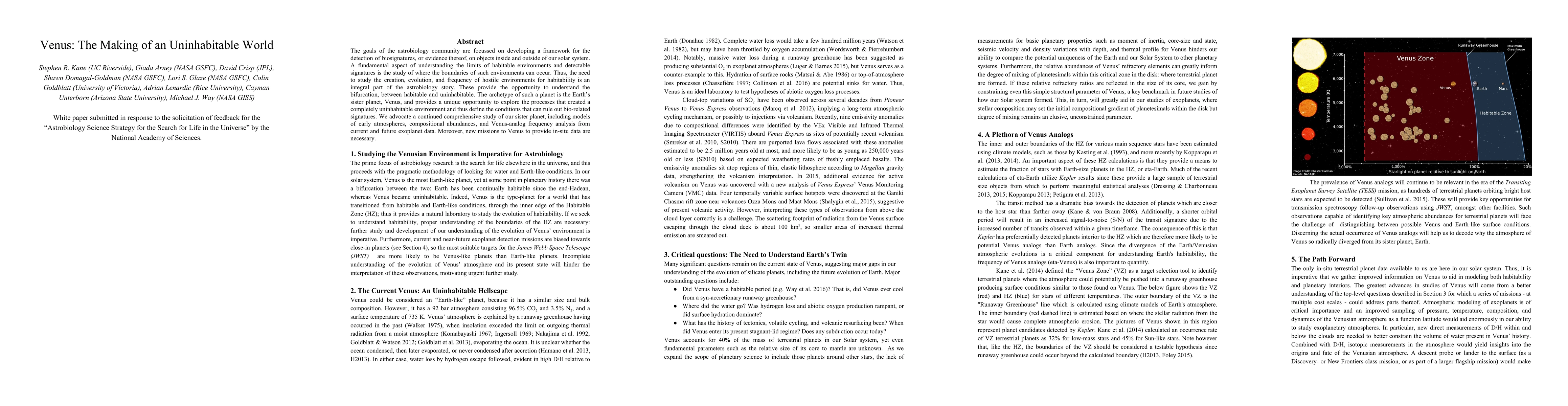 The goals of the astrobiology community are focussed on developing a framework for the detection of biosignatures, or evidence thereof, on objects inside and outside of our solar system. A fundamental aspect of understanding the limits of habitable environments and detectable signatures is the study of where the boundaries of such environments can occur. Thus, the need to study the creation, evolution, and frequency of hostile environments for habitability is an integral part of the astrobiology story. These provide the opportunity to understand the bifurcation, between habitable and uninhabitable. The archetype of such a planet is the Earth's sister planet, Venus, and provides a unique opportunity to explore the processes that created a completely uninhabitable environment and thus define the conditions that can rule out bio-related signatures. We advocate a continued comprehensive study of our sister planet, including models of early atmospheres, compositional abundances, and Venus-analog frequency analysis from current and future exoplanet data. Moreover, new missions to Venus to provide in-situ data are necessary.