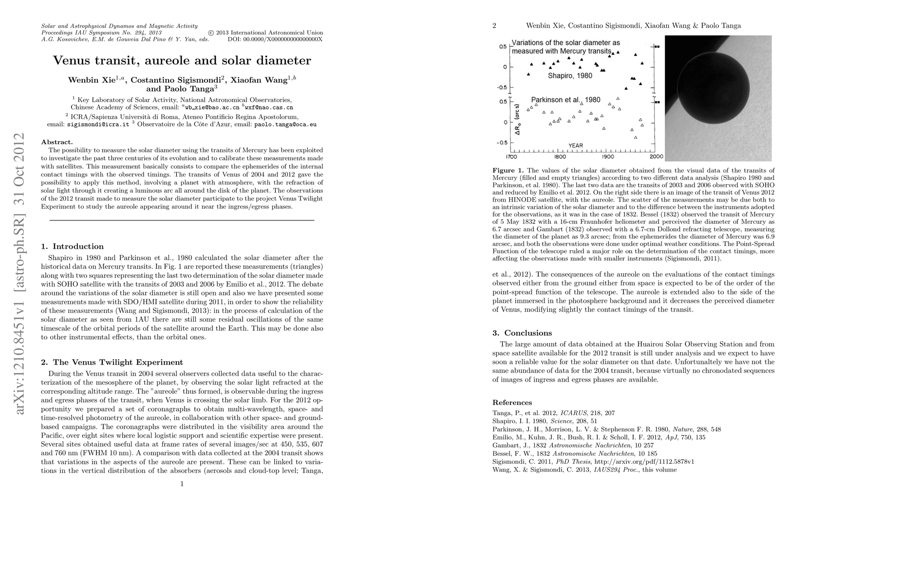 A 2012 Venus transit allowed scientists to measure the solar diameter using the planet's atmosphere, which created a luminous arc around its disk. This measurement has implications for calibrating satellite measurements of the sun's size.