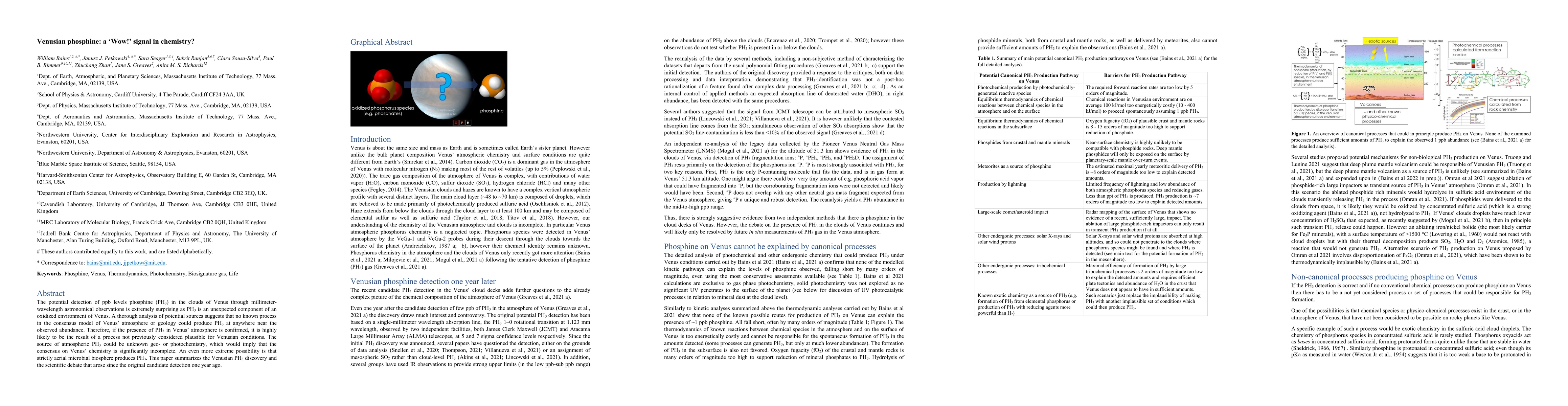 The detection of phosphine (PH3) in Venus' atmosphere has raised significant scientific intrigue, as its presence challenges current understanding of Venusian chemistry and could hint at unknown geochemical processes or even microbial life. This discovery has sparked debate on the potential sources of PH3 and the completeness of existing Venusian atmospheric models.