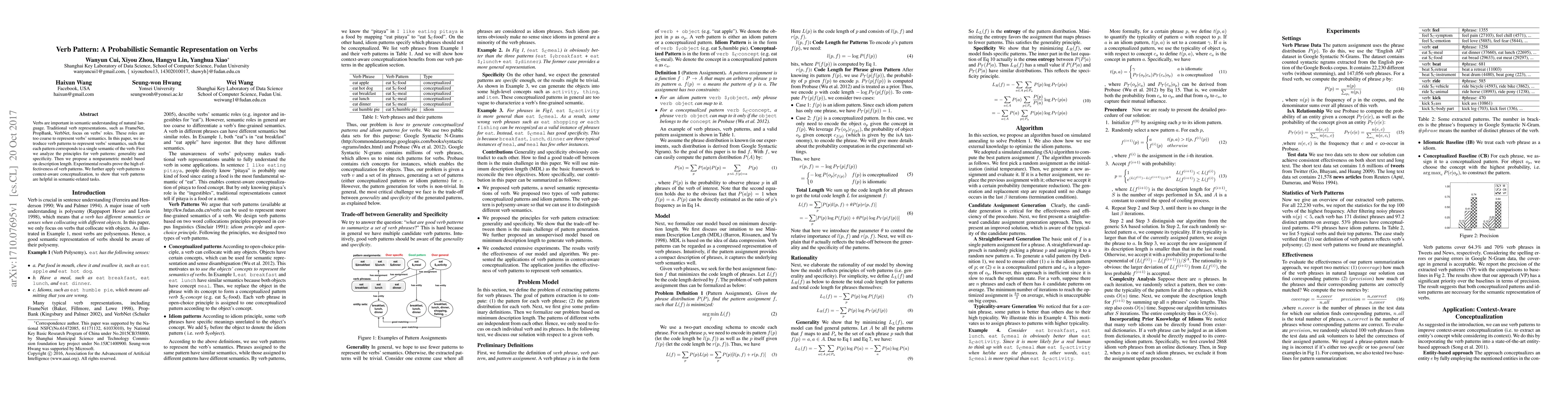 This paper introduces verb patterns as a probabilistic semantic representation to better capture the nuanced meanings of verbs beyond traditional role-based representations. It demonstrates the effectiveness of verb patterns through a nonparametric model and shows their utility in context-aware conceptualization for semantic-related tasks.