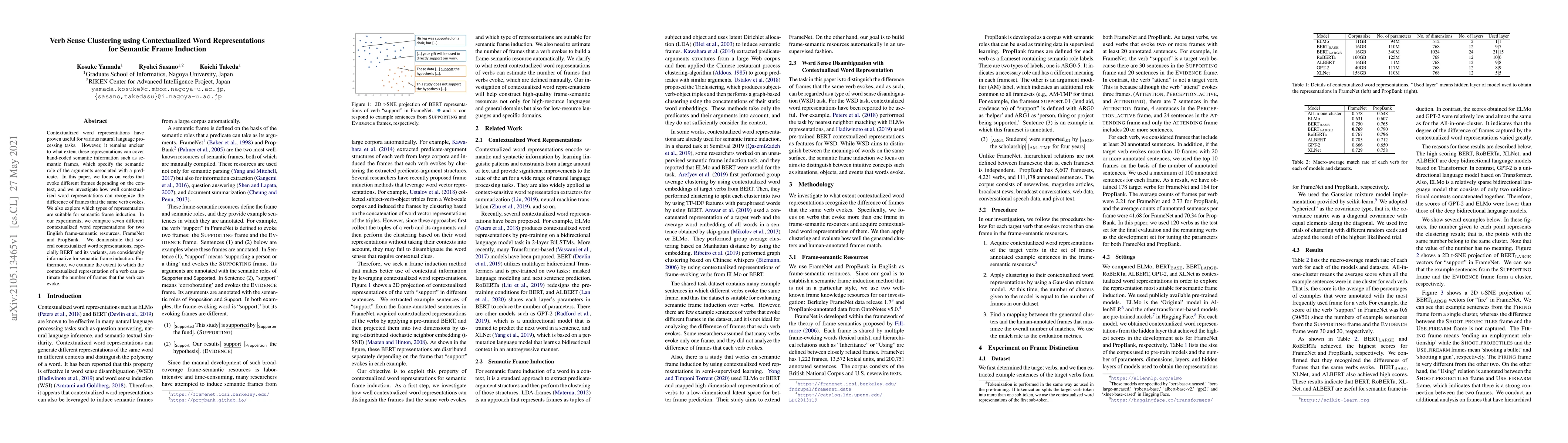 This paper investigates how contextualized word representations can recognize different semantic frames evoked by verbs in context, comparing several models for their effectiveness in semantic frame induction using FrameNet and PropBank. The study finds that BERT and its variants are particularly effective for this task.