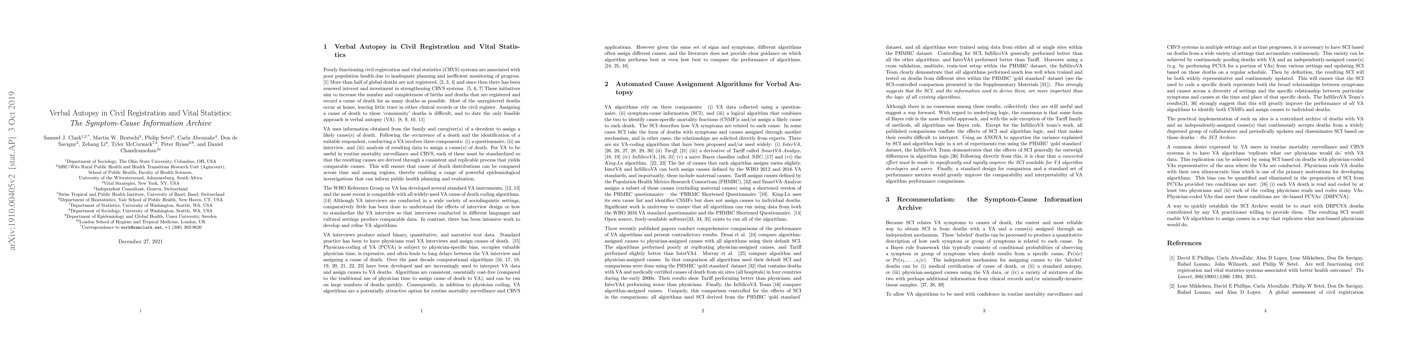 This paper discusses the importance of verbal autopsy in assigning causes of death in regions with weak civil registration systems, and proposes the creation of a global symptom-cause archive to train and validate machine-based algorithms for automating cause assignment, thereby improving public health monitoring and intervention.