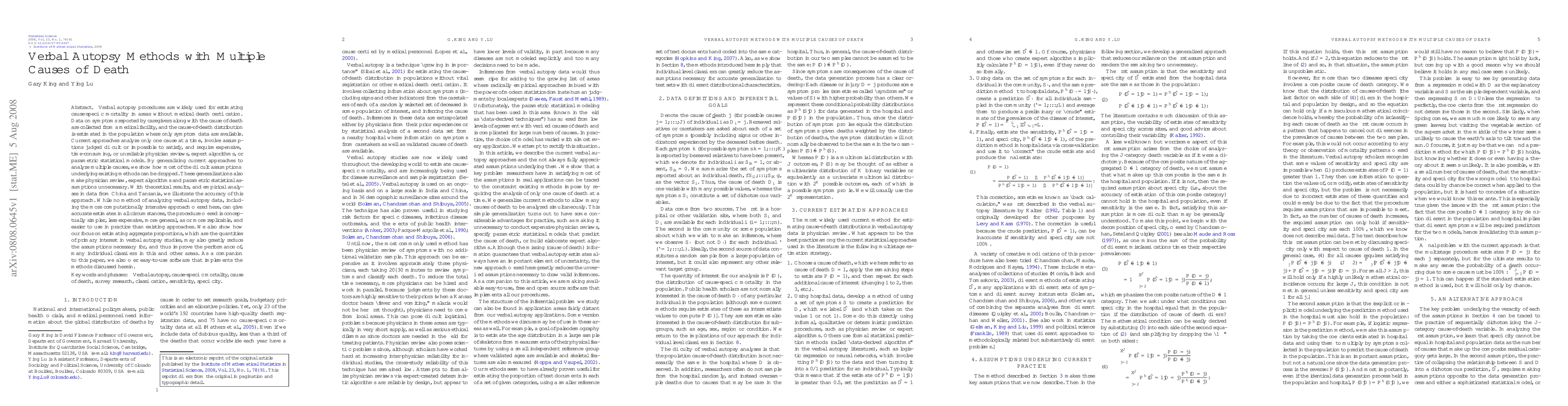 This paper presents a new method for analyzing verbal autopsy data to estimate multiple causes of death, simplifying the process and reducing reliance on costly physician reviews and complex statistical models. The proposed method is shown to be more accurate, general, and easier to use than existing approaches through theoretical and empirical analyses in China and Tanzania.