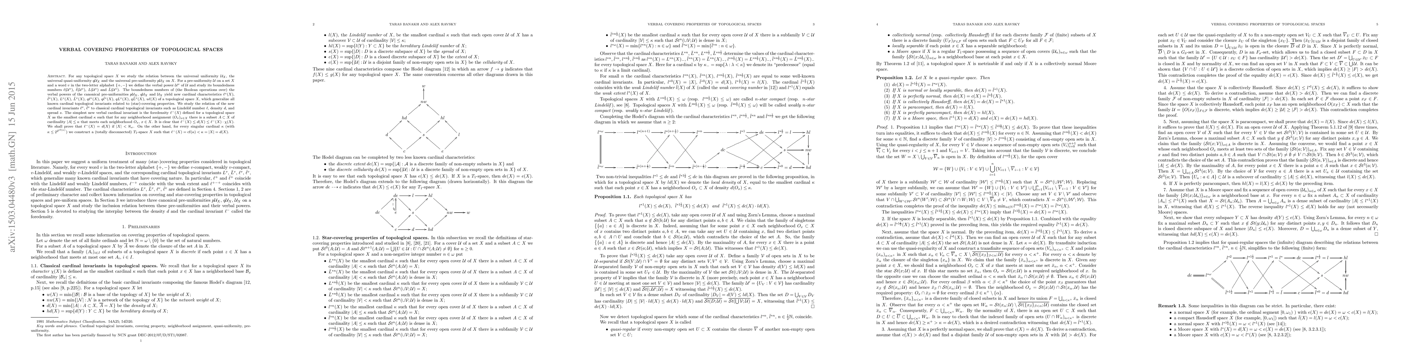 For any topological space $X$ we study the relation between the universal uniformity $\mathcal U_X$, the universal quasi-uniformity $q\mathcal U_X$ and the universal pre-uniformity $p\mathcal U_X$ on $X$. For a pre-uniformity $\mathcal U$ on a set $X$ and a word $v$ in the two-letter alphabet $\{+,-\}$ we define the verbal power $\mathcal U^v$ of $\mathcal U$ and study its boundedness numbers $\ell(\mathcal U^v)$ and $\bar \ell(\mathcal U^v)$. The boundedness numbers of the (Boolean operations over) the verbal powers of the canonical pre-uniformities $p\mathcal U_X$, $q\mathcal U_X$ and $\mathcal U_X$ yield new cardinal characteristics $\ell^v(X)$, $\bar \ell^v(X)$, $q\ell^v(X)$, $q\bar \ell^v(X)$, $u\ell(X)$ of a topological space $X$, which generalize all known cardinal topological invariants related to (star)-covering properties. We study the relation of the new cardinal invariants $\ell^v$, $\bar \ell^v$ to classical cardinal topological invariants such as Lindel\"of number $\ell$, density $d$, and spread $s$. The simplest new verbal cardinal invariant is the foredensity $\ell^-(X)$ defined for a topological space $X$ as the smallest cardinal $\kappa$ such that for any neighborhood assignment $(O_x)_{x\in X}$ there is a subset $A\subset X$ of cardinality $|A|\le\kappa$ that meets each neighborhood $O_x$, $x\in X$. It is clear that $\ell^-(X)\le d(X)\le \ell^-(X)\cdot \chi(X)$. We shall prove that $\ell^-(X)=d(X)$ if $|X|<\aleph_\omega$. On the other hand, for every singular cardinal $\kappa$ (with $\kappa\le 2^{2^{cf(\kappa)}}$) we construct a (totally disconnected) $T_1$-space $X$ such that $\ell^-(X)=cf(\kappa)<\kappa=|X|=d(X)$.