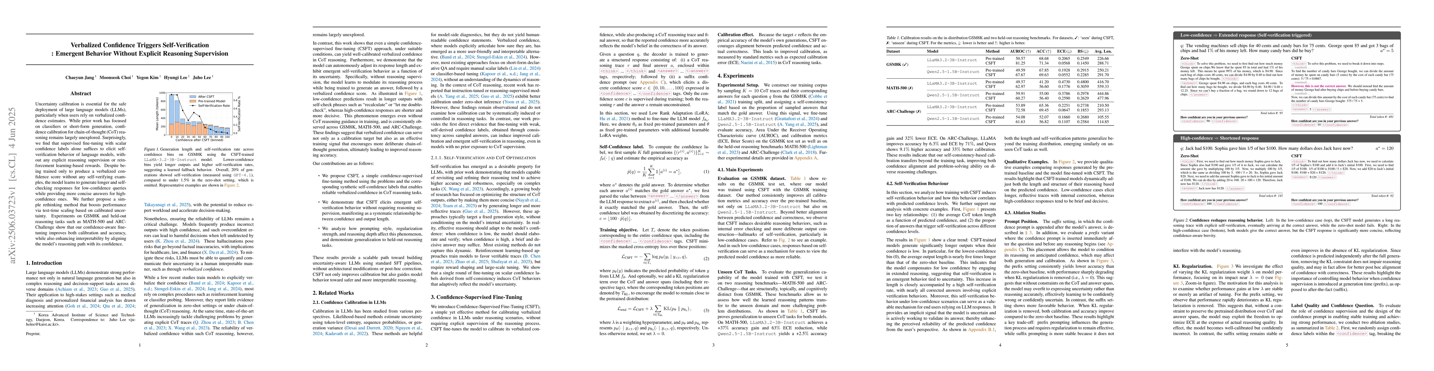 This work is novel as it demonstrates emergent self-verification behavior in language models through confidence-aware fine-tuning, unlike previous approaches that required explicit supervision or reinforcement learning-based rewards.