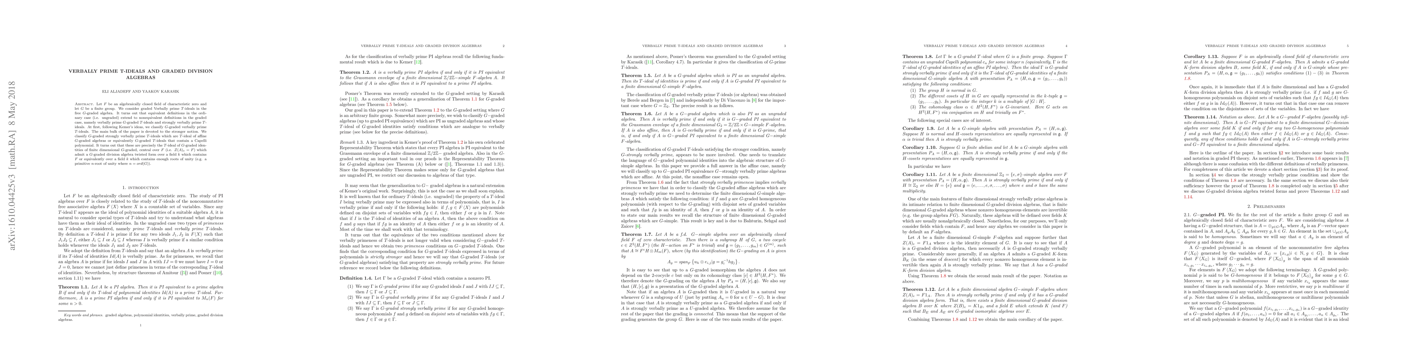 Let $F$ be an algebraically closed field of characteristic zero and let $G$ be a finite group. We consider graded Verbally prime $T$-ideals in the free $G$-graded algebra. It turns out that equivalent definitions in the ordinary case (i.e. ungraded) extend to nonequivalent definitions in the graded case, namely verbally prime $G$-graded $T$-ideals and strongly verbally prime $T$-ideals. At first, following Kemer's ideas, we classify $G$-graded verbally prime $T$-ideals. The main bulk of the paper is devoted to the stronger notion. We classify $G$-graded strongly verbally prime $T$-ideals which are $T$-ideal of affine $G$-graded algebras or equivalently $G$-graded $T$-ideals that contain a Capelli polynomial. It turns out that these are precisely the $T$-ideal of $G$-graded identities of finite dimensional $G$-graded, central over $F$ (i.e. $Z(A)_{e}=F$) which admit a $G$-graded division algebra twisted form over a field $k$ which contains $F$ or equivalently over a field $k$ which contains enough roots of unity (e.g. a primitive $n$-root of unity where $n = ord(G)$).