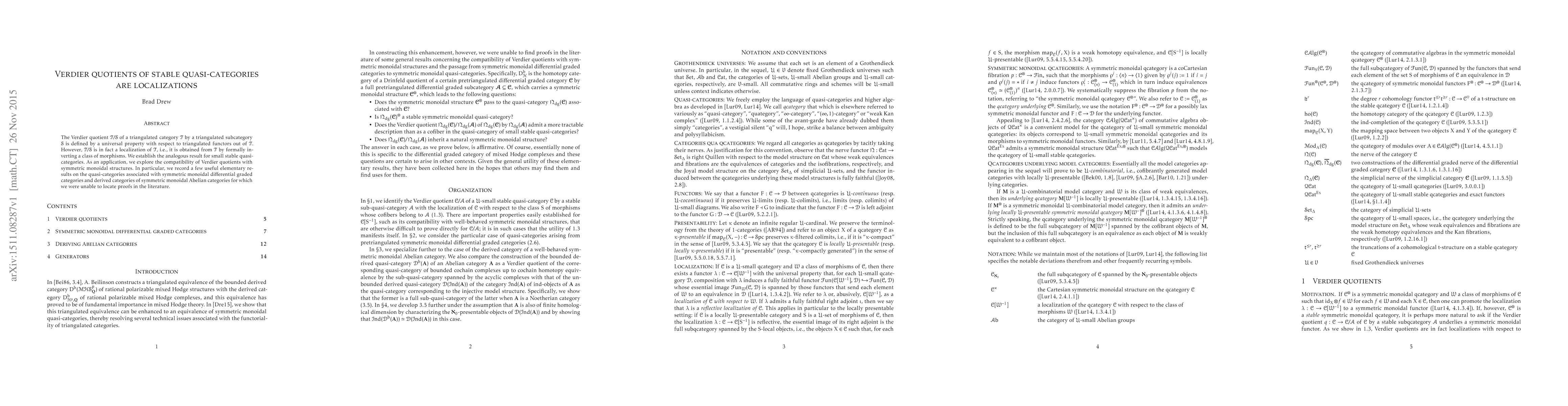 The paper establishes that Verdier quotients of stable quasi-categories are localizations, formally inverting certain morphisms. It also investigates the compatibility of these quotients with symmetric monoidal structures, providing new results on associated quasi-categories.