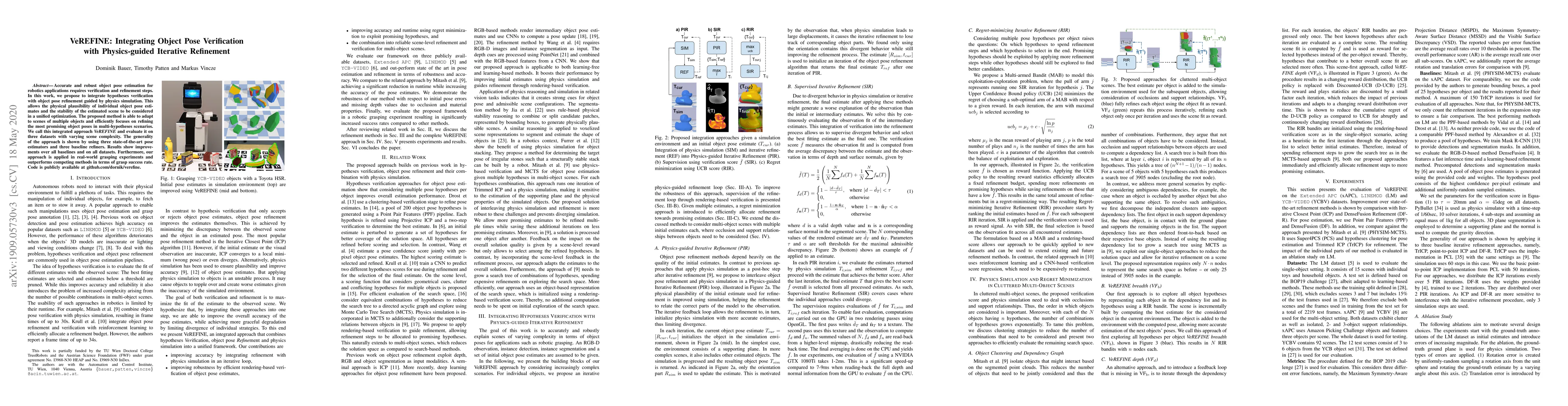 Accurate and robust object pose estimation for robotics applications requires verification and refinement steps. In this work, we propose to integrate hypotheses verification with object pose refinement guided by physics simulation. This allows the physical plausibility of individual object pose estimates and the stability of the estimated scene to be considered in a unified optimization. The proposed method is able to adapt to scenes of multiple objects and efficiently focuses on refining the most promising object poses in multi-hypotheses scenarios. We call this integrated approach VeREFINE and evaluate it on three datasets with varying scene complexity. The generality of the approach is shown by using three state-of-the-art pose estimators and three baseline refiners. Results show improvements over all baselines and on all datasets. Furthermore, our approach is applied in real-world grasping experiments and outperforms competing methods in terms of grasp success rate. Code is publicly available at github.com/dornik/verefine.