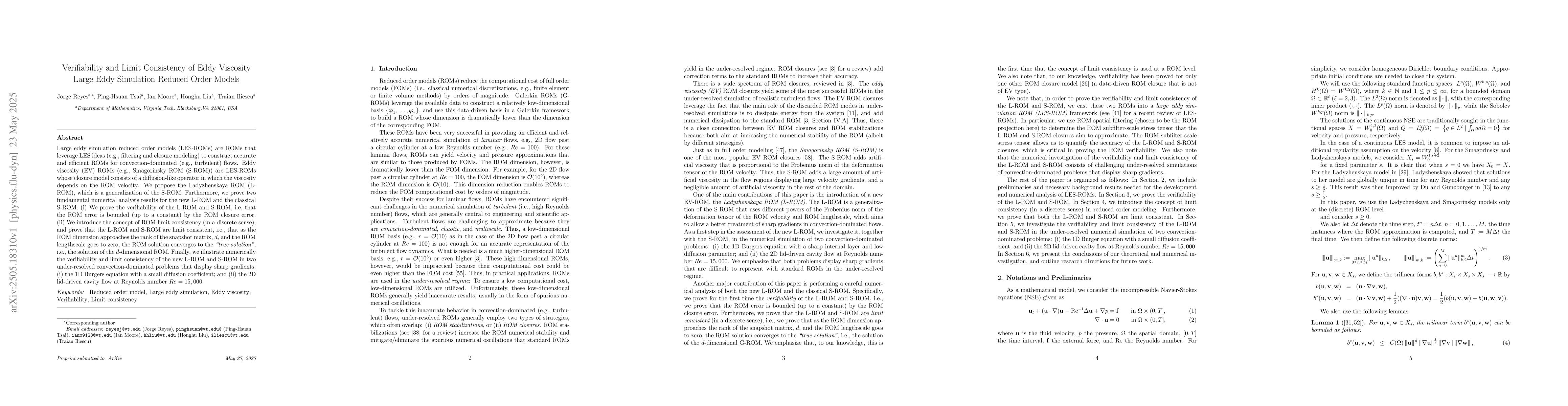 This work is novel due to the generalization of the Smagorinsky ROM to the Ladyzhenskaya ROM, and the formal proof of verifiability and limit consistency for these ROMs, which were not previously established.