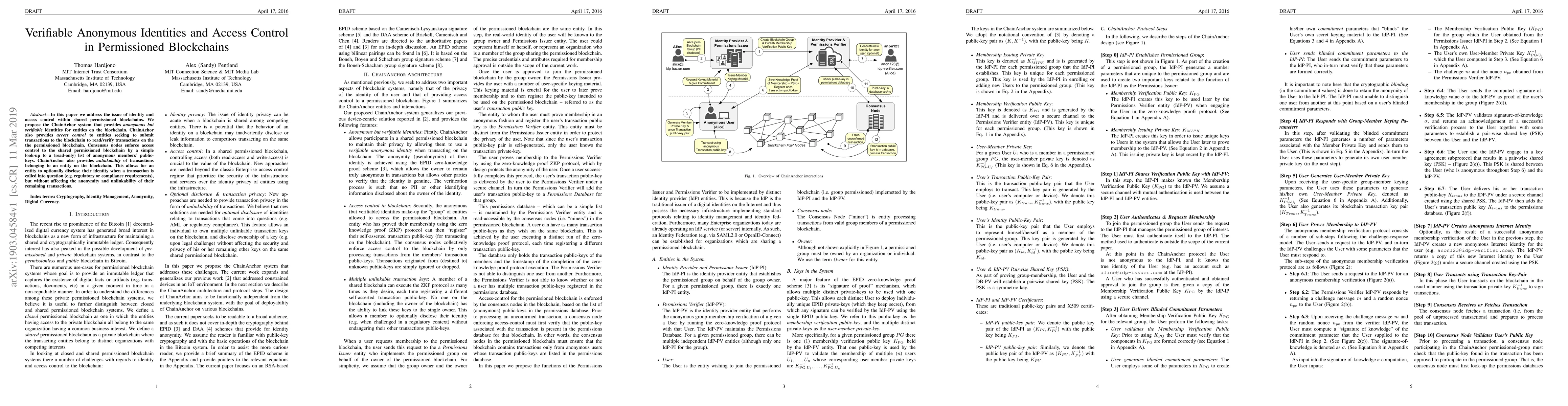 This paper proposes the ChainAchor system for permissioned blockchains, offering anonymous yet verifiable identities and access control. It ensures unlinkability of transactions while allowing entities to optionally disclose their identity under regulatory scrutiny without compromising anonymity.