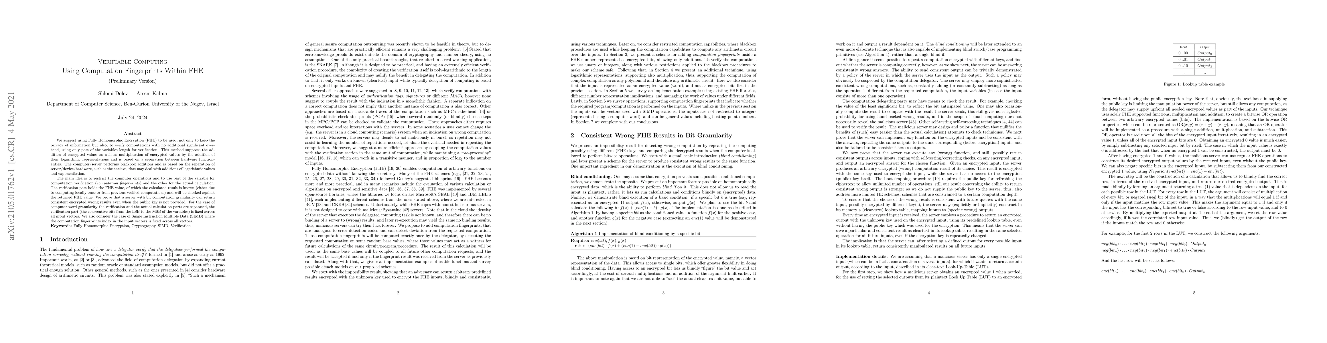 We suggest using Fully Homomorphic Encryption (FHE) to be used, not only to keep the privacy of information but also, to verify computations with no additional significant overhead, using only part of the variables length for verification. This method supports the addition of encrypted values as well as multiplication of encrypted values by the addition of their logarithmic representations and is based on a separation between hardware functionalities. The computer/server performs blackbox additions and is based on the separation of server/device/hardware, such as the enclave, that may deal with additions of logarithmic values and exponentiation. The main idea is to restrict the computer operations and to use part of the variable for computation verification (computation fingerprints) and the other for the actual calculation. The verification part holds the FHE value, of which the calculated result is known (either due to computing locally once or from previous verified computations) and will be checked against the returned FHE value. We prove that a server with bit computation granularity can return consistent encrypted wrong results even when the public key is not provided. For the case of computer word granularity the verification and the actual calculation parts are separated, the verification part (the consecutive bits from the LSB to the MSB of the variables) is fixed across all input vectors. We also consider the case of Single Instruction Multiple Data (SIMD) where the computation fingerprints index in the input vectors is fixed across all vectors.