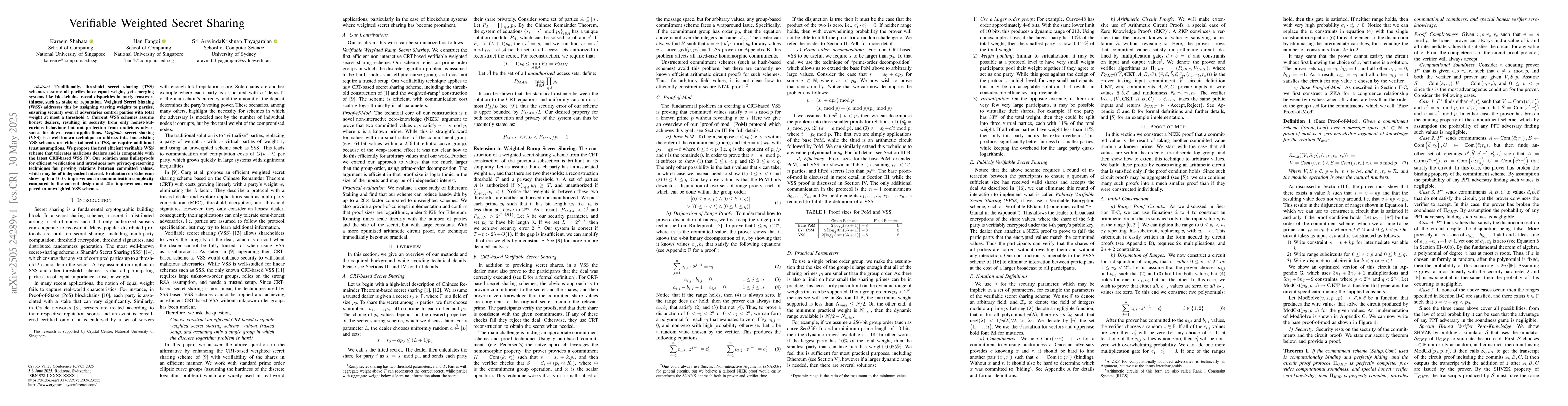 This research is significant as it addresses the limitations of traditional threshold secret sharing (TSS) schemes by incorporating weighted secret sharing (WSS), which is crucial for systems like blockchains where parties have varying levels of trustworthiness, such as stake or reputation.
