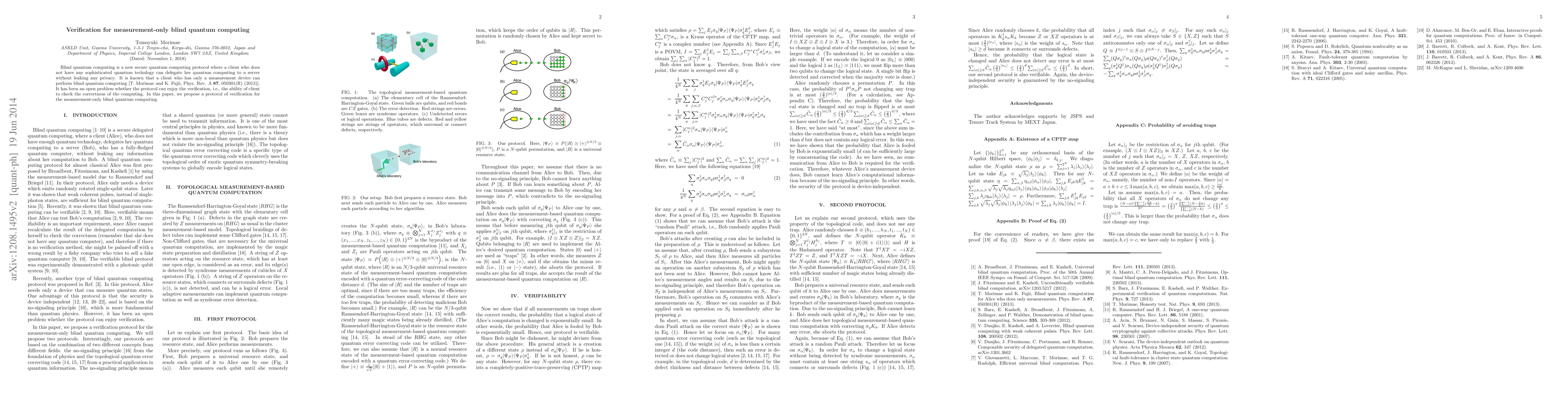 This paper proposes a verification protocol to ensure the correctness of measurement-only blind quantum computing, allowing clients without advanced quantum technology to securely delegate computations to a server while preventing privacy leakage. The verification enables clients to check the accuracy of the server’s quantum computations.