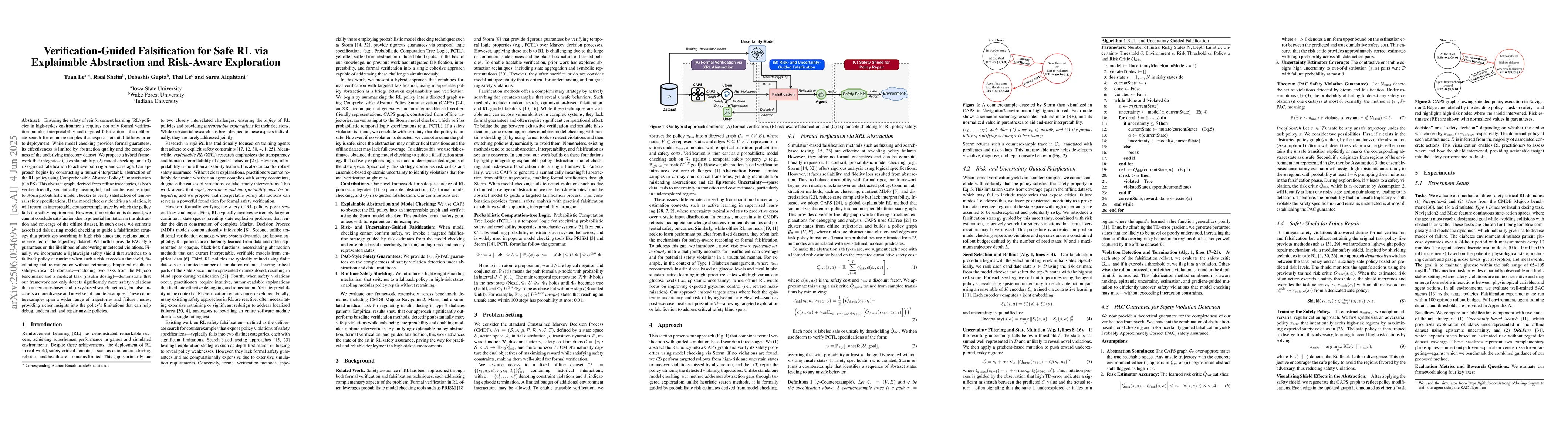 A hybrid framework combining explainable policy abstraction, model checking, risk-aware falsification, and a runtime safety shield for safe RL.