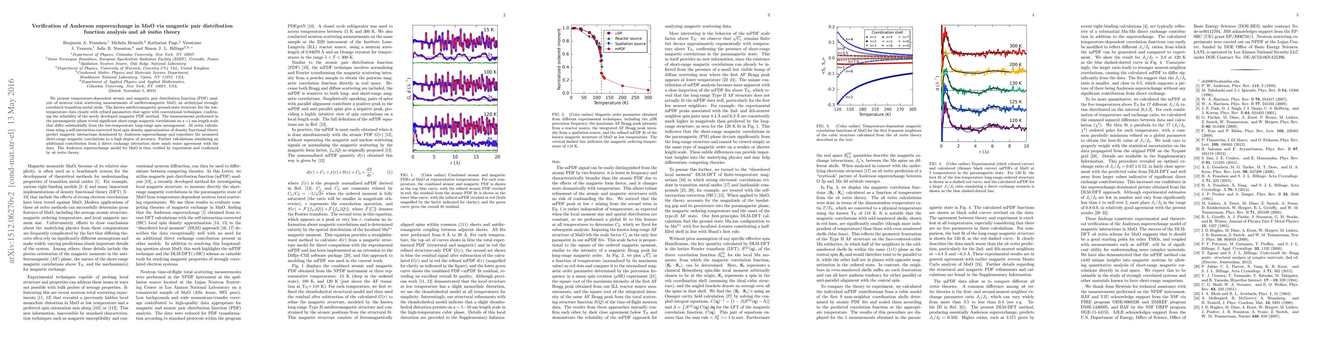 This study verifies the Anderson superexchange mechanism in MnO through neutron scattering and \textit{ab initio} calculations, confirming significant short-range magnetic correlations and validating the magnetic pair distribution function analysis. The \textit{ab initio} theory supports the dominance of Anderson superexchange over direct exchange interactions.
