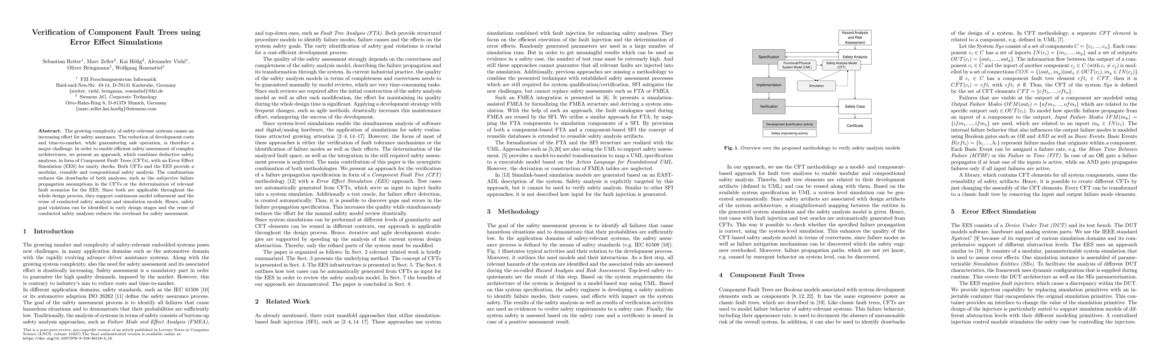 This paper proposes a method to verify Component Fault Trees (CFTs) using Error Effect Simulations (EES) to enhance safety assurance in complex systems. The combined approach mitigates the limitations of both CFTs and EES, enabling efficient, reusable, and continuous safety analysis throughout the design process.