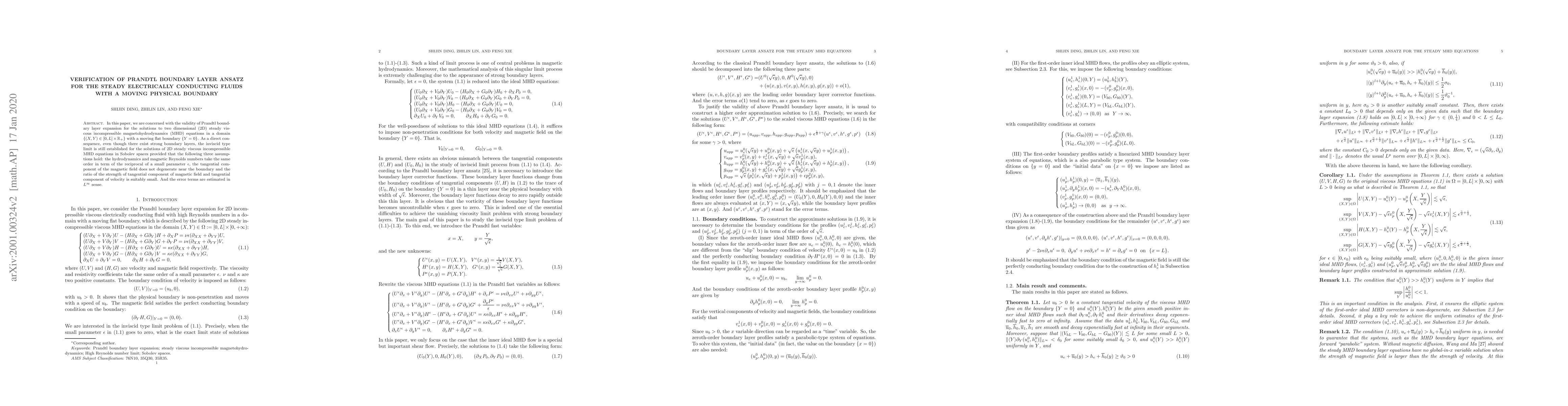 This paper verifies the Prandtl boundary layer ansatz for steady, electrically conducting fluids governed by 2D viscous incompressible MHD equations with a moving boundary. It establishes the inviscid limit under specific conditions, estimating error terms in $L^\infty$ norm.