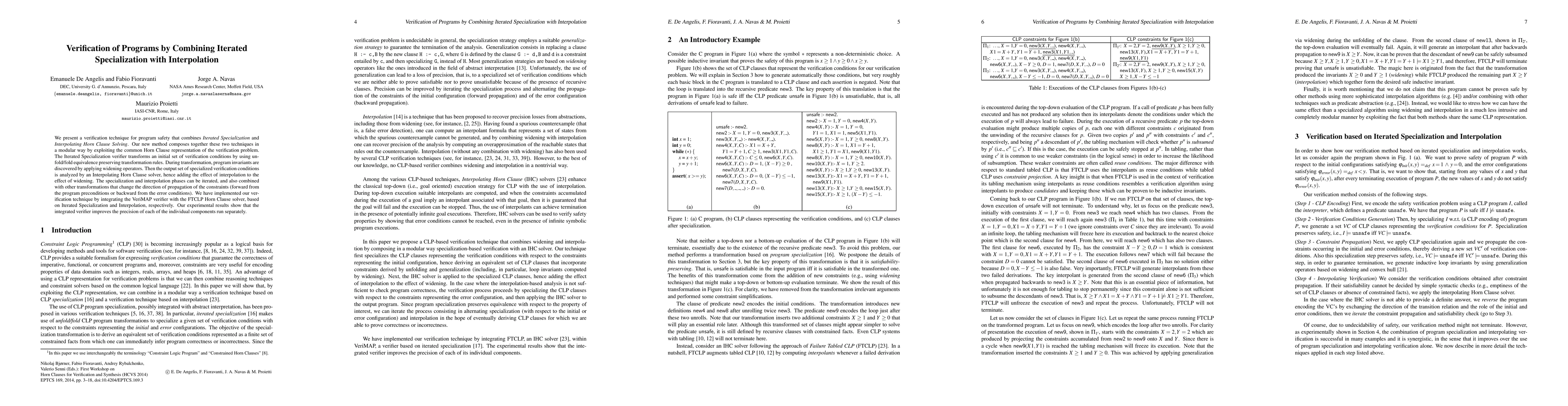 This paper introduces a new verification technique combining Iterated Specialization and Interpolation to enhance program safety checks. The method iteratively refines verification conditions and leverages both widening and interpolation to improve precision, showing improved results over individual components in experiments.