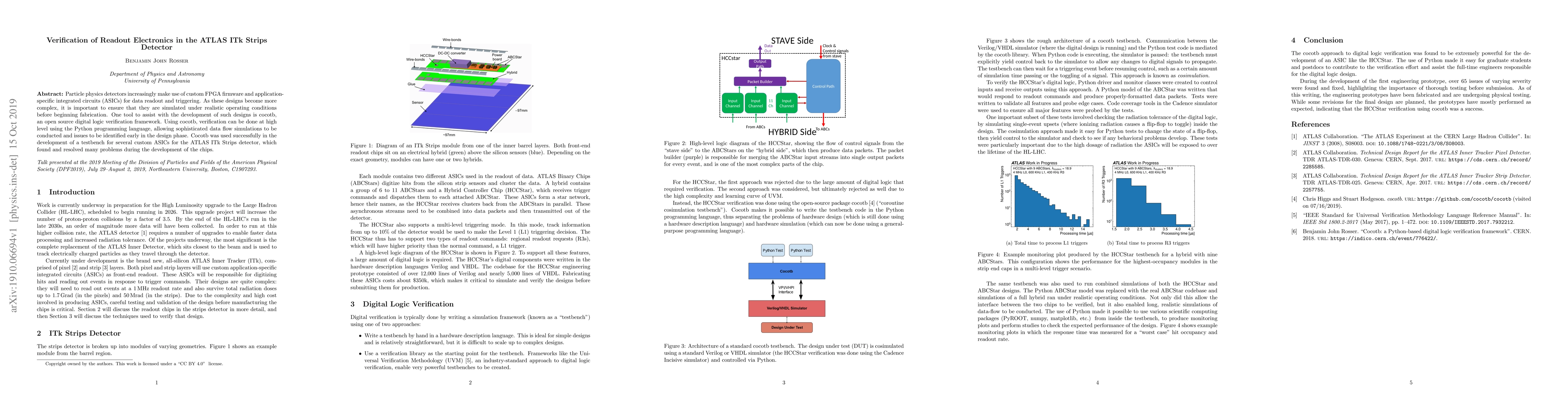 This paper details the use of cocotb, an open-source digital logic verification framework, to simulate and verify custom FPGA firmware and ASICs for the ATLAS ITk Strips detector. The study found and resolved numerous design issues early in the development phase, demonstrating the effectiveness of high-level Python-based simulations.