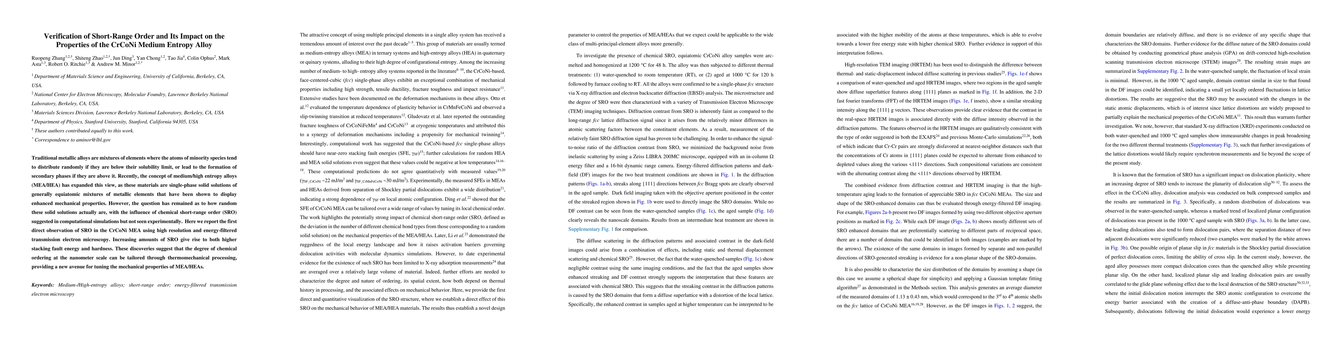 This study reports the first direct observation of chemical short-range order (SRO) in the CrCoNi medium entropy alloy using advanced microscopy techniques. The findings suggest that SRO influences mechanical properties, indicating that nanometer-scale chemical ordering can be manipulated to enhance alloy performance.