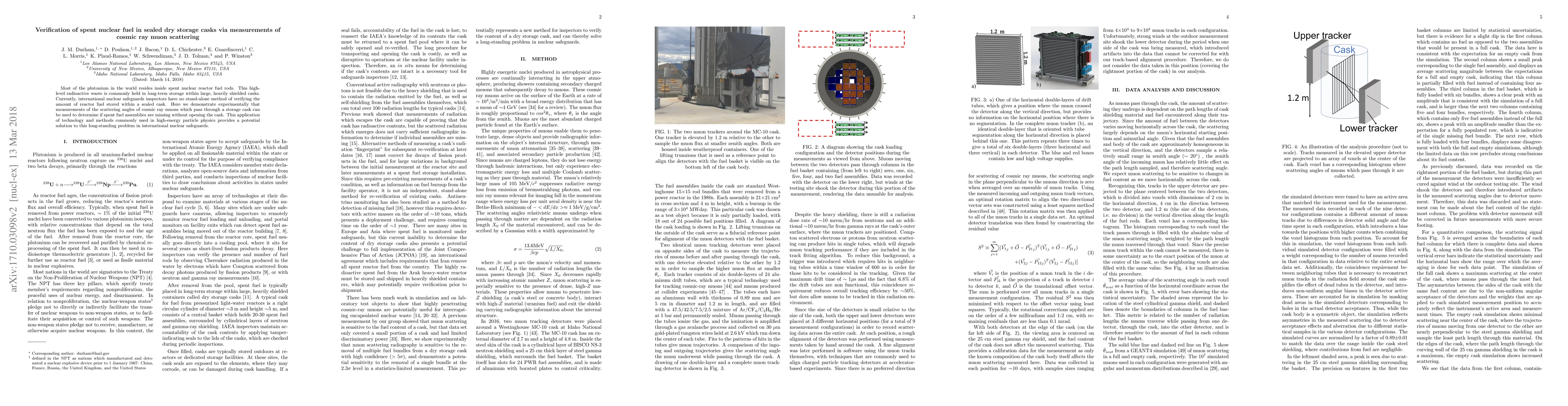 This paper demonstrates a method for verifying the contents of sealed dry storage casks for spent nuclear fuel using cosmic ray muon scattering, offering a non-invasive means to detect missing fuel assemblies without opening the cask. This approach leverages techniques from high-energy particle physics to address a critical issue in international nuclear safeguards.