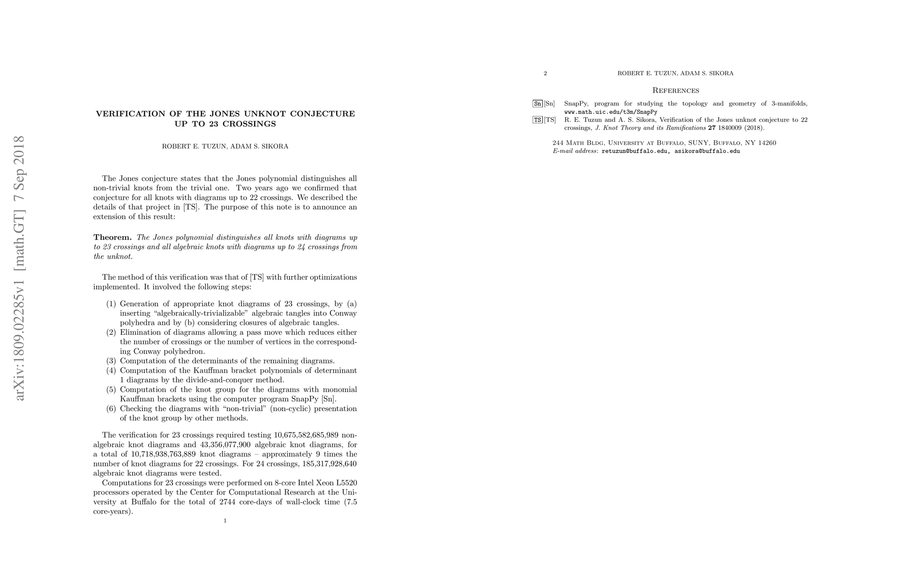 Summary: This research verifies the Jones unknot conjecture, confirming that the Jones polynomial can distinguish the unknot from nontrivial knots for all knots with up to 23 crossings. The study provides a significant step in understanding knot theory.