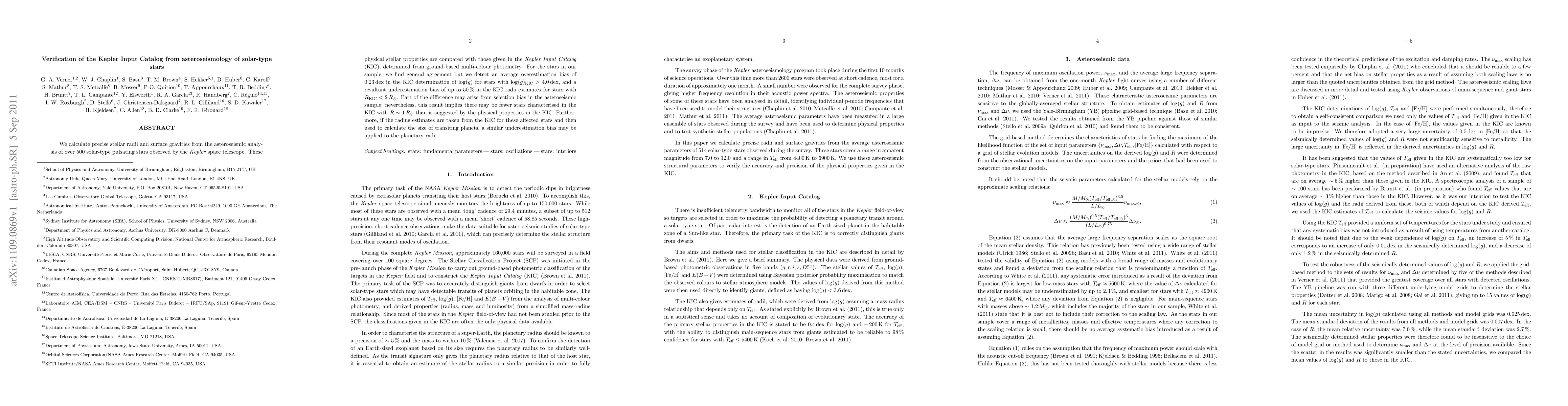We calculate precise stellar radii and surface gravities from the asteroseismic analysis of over 500 solar-type pulsating stars observed by the Kepler space telescope. These physical stellar properties are compared with those given in the Kepler Input Catalog (KIC), determined from ground-based multi-color photometry. For the stars in our sample, we find general agreement but we detect an average overestimation bias of 0.23 dex in the KIC determination of log (g) for stars with log (g)_KIC > 4.0 dex, and a resultant underestimation bias of up to 50% in the KIC radii estimates for stars with R_KIC < 2 R sun. Part of the difference may arise from selection bias in the asteroseismic sample; nevertheless, this result implies there may be fewer stars characterized in the KIC with R ~ 1 R sun than is suggested by the physical properties in the KIC. Furthermore, if the radius estimates are taken from the KIC for these affected stars and then used to calculate the size of transiting planets, a similar underestimation bias may be applied to the planetary radii.