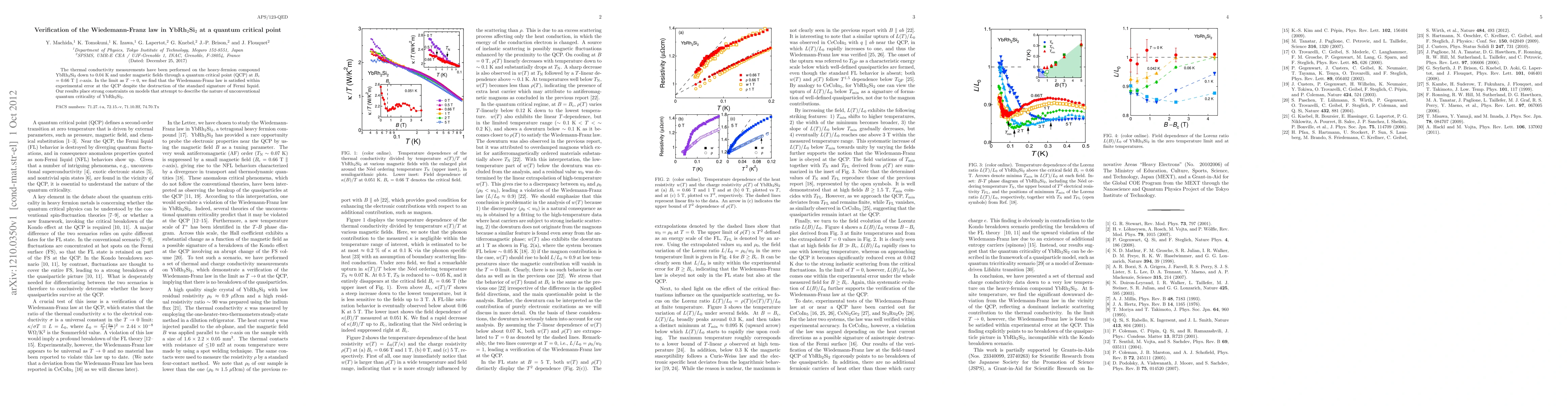 The study verifies the Wiedemann-Franz law in YbRh2Si2 at a quantum critical point, finding it holds within experimental error despite the absence of standard Fermi liquid behavior. This constrains models explaining the unconventional quantum criticality in YbRh2Si2.
