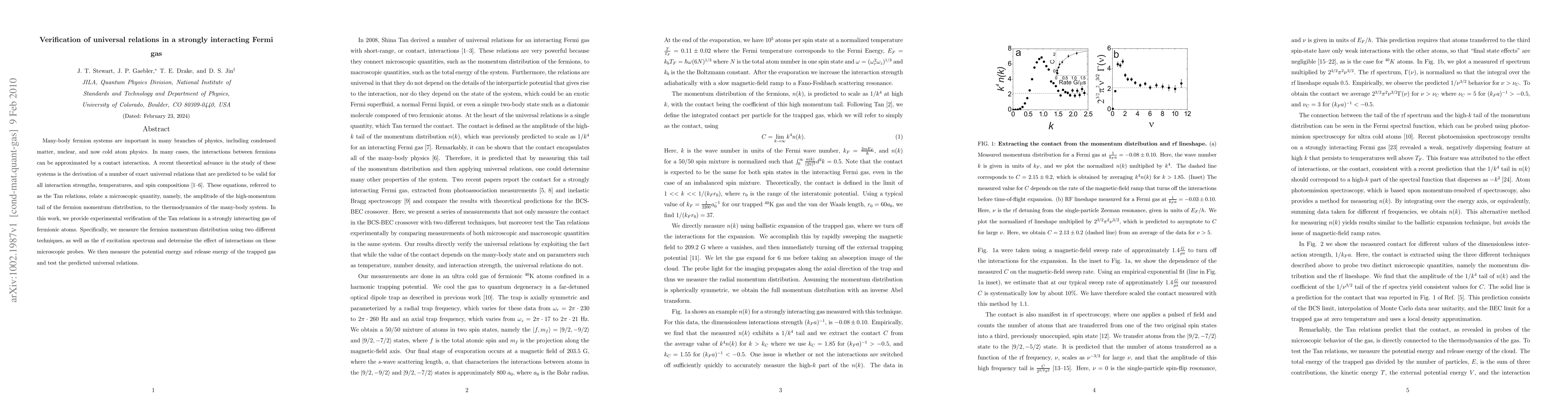 Researchers verify theoretical Tan relations for strongly interacting Fermi gas, confirming universal connections between microscopic momentum distribution and thermodynamics of the system.