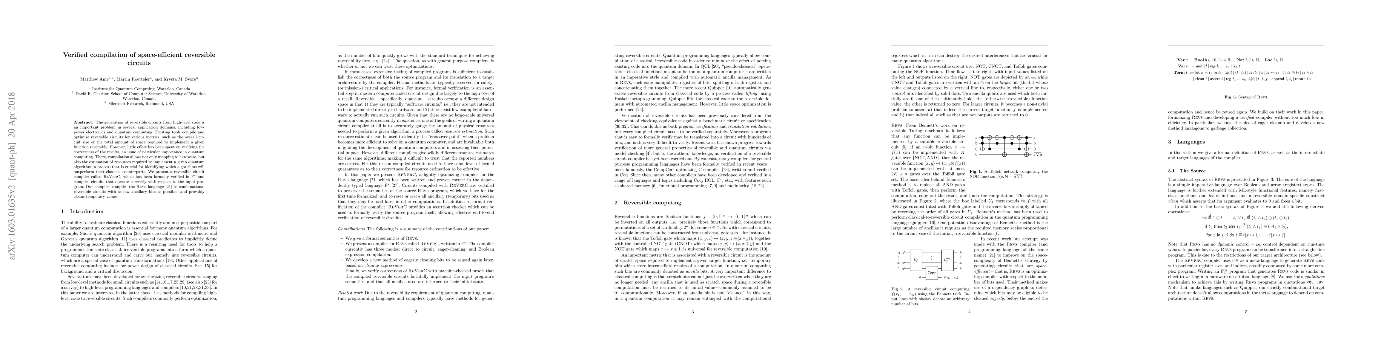 ReVerC introduces a verified compilation method for reversible circuits using partial evaluation over an interpretation of the heap, which simplifies both development and verification.