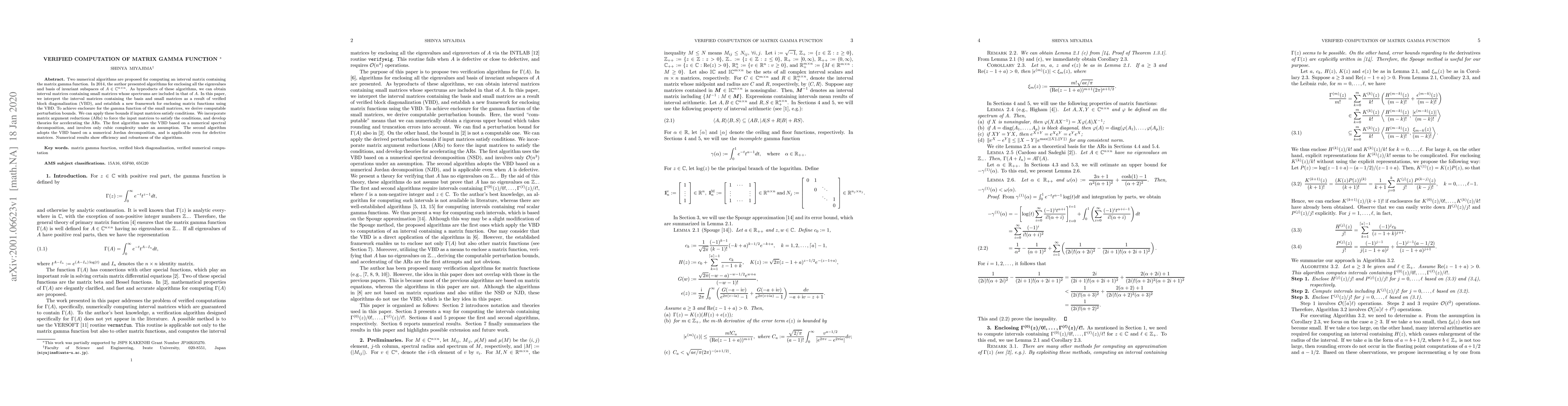 Two numerical algorithms are proposed for computing an interval matrix containing the matrix gamma function. In 2014, the author presented algorithms for enclosing all the eigenvalues and basis of invariant subspaces of $A \in \mathbb{C}^{n \times n}$. As byproducts of these algorithms, we can obtain interval matrices containing small matrices whose spectrums are included in that of $A$. In this paper, we interpret the interval matrices containing the basis and small matrices as a result of verified block diagonalization (VBD), and establish a new framework for enclosing matrix functions using the VBD. To achieve enclosure for the gamma function of the small matrices, we derive computable perturbation bounds. We can apply these bounds if input matrices satisfy conditions. We incorporate matrix argument reductions (ARs) to force the input matrices to satisfy the conditions, and develop theories for accelerating the ARs. The first algorithm uses the VBD based on a numerical spectral decomposition, and involves only cubic complexity under an assumption. The second algorithm adopts the VBD based on a numerical Jordan decomposition, and is applicable even for defective matrices. Numerical results show efficiency and robustness of the algorithms.