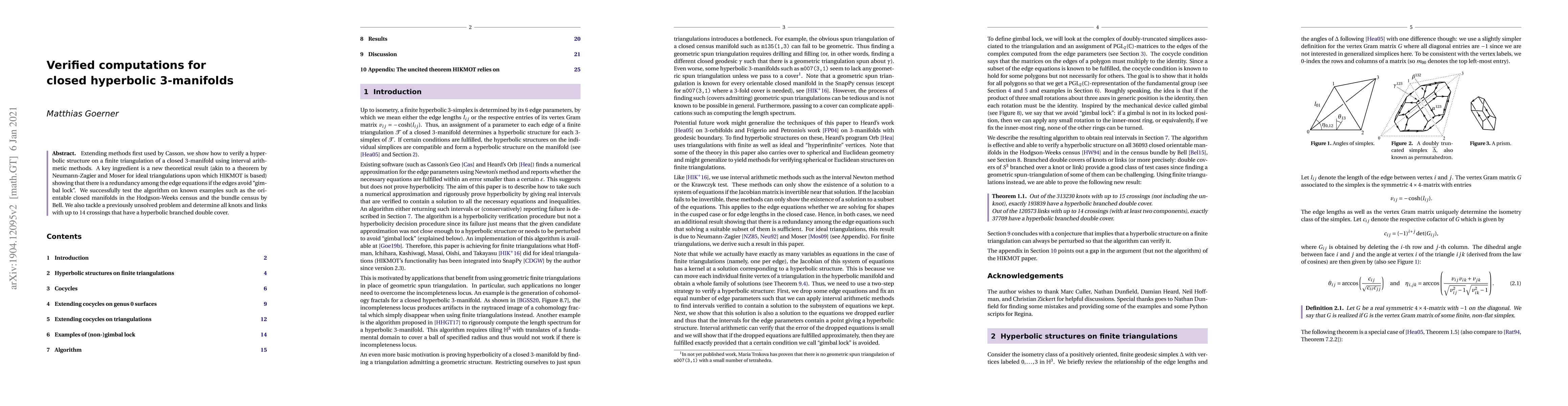 Extending methods first used by Casson, we show how to verify a hyperbolic structure on a finite triangulation of a closed 3-manifold using interval arithmetic methods. A key ingredient is a new theoretical result (akin to a theorem by Neumann-Zagier and Moser for ideal triangulations upon which HIKMOT is based) showing that there is a redundancy among the edge equations if the edges avoid "gimbal lock". We successfully test the algorithm on known examples such as the orientable closed manifolds in the Hodgson-Weeks census and the bundle census by Bell. We also tackle a previously unsolved problem and determine all knots and links with up to 14 crossings that have a hyperbolic branched double cover.