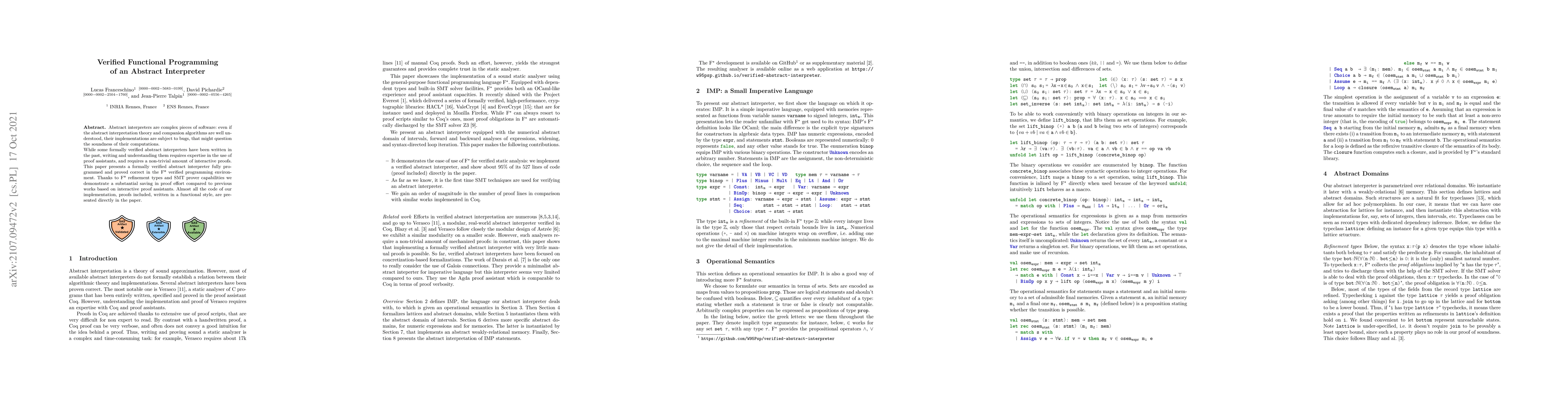 This paper presents a formally verified abstract interpreter implemented and proved correct in the F* verified programming environment, showcasing significant reduction in proof effort compared to previous interactive proof-based methods. The implementation and proofs are presented in a functional style, with nearly all code and proofs included directly in the paper.