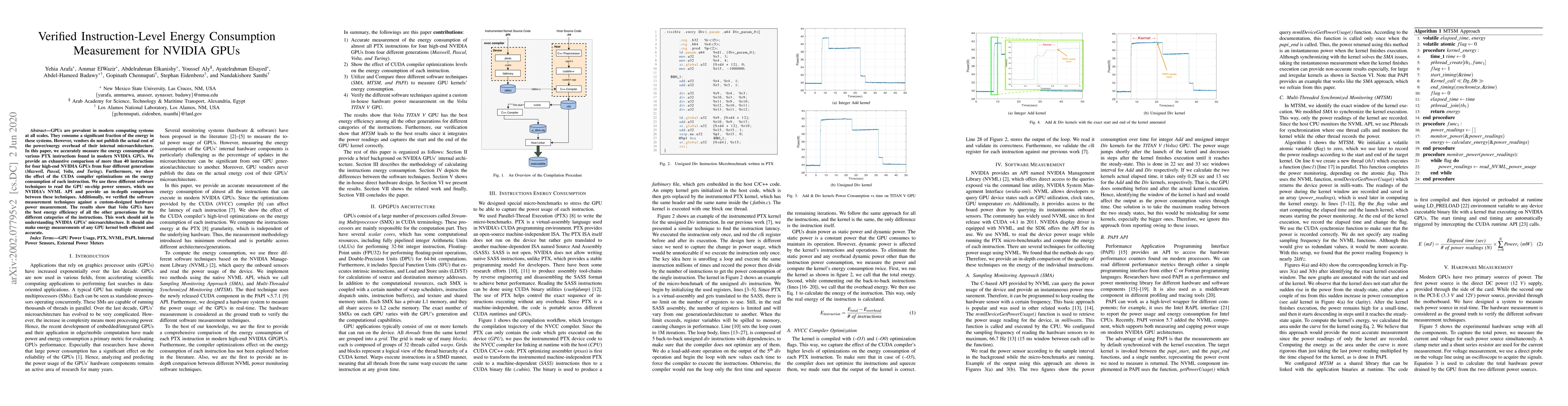 This paper measures the energy consumption of various PTX instructions in modern NVIDIA GPUs, comparing over 40 instructions across four GPU generations. The study verifies software techniques against hardware measurements and finds Volta GPUs to be the most energy-efficient.