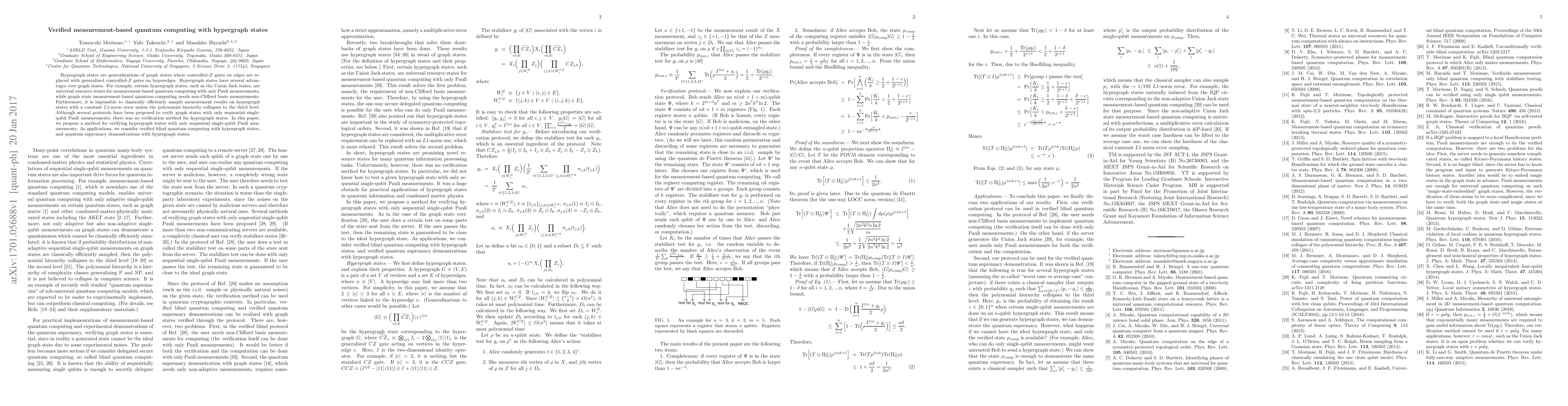 This paper proposes a method to verify hypergraph states using only sequential single-qubit Pauli measurements, which are easier to implement than non-Clifford basis measurements. This advancement facilitates verified blind quantum computing and potential quantum supremacy demonstrations with hypergraph states.