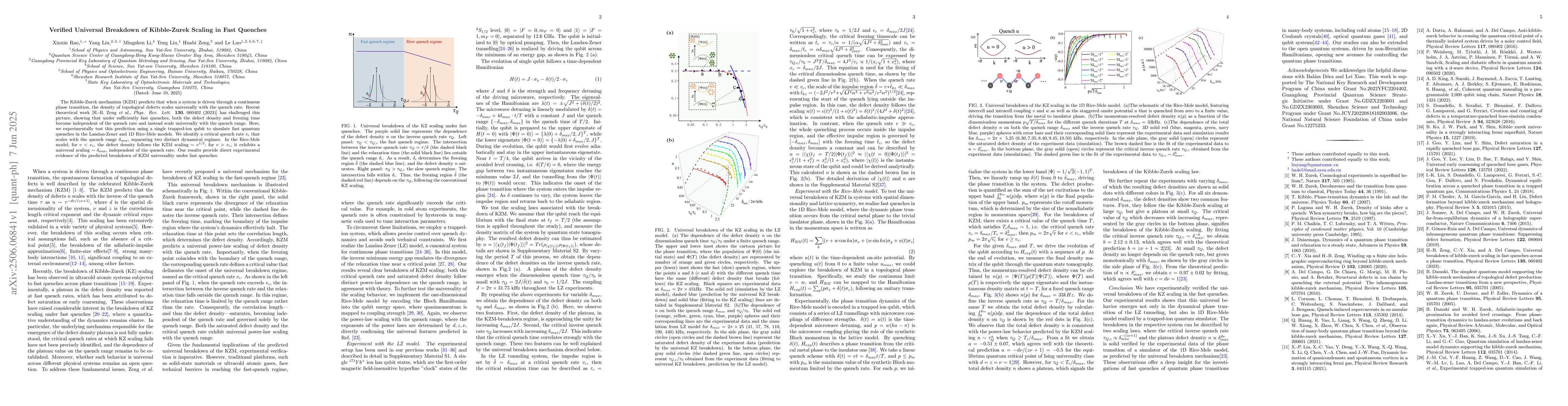 The Kibble-Zurek mechanism (KZM) predicts that when a system is driven through a continuous phase transition, the density of topological defects scales universally with the quench rate. Recent theoretical work [H.-B. Zeng \textit{et al.}, \textit{Phys. Rev. Lett.} \textbf{130}, 060402 (2023)] has challenged this picture, showing that under sufficiently fast quenches, both the defect density and freezing time become independent of the quench rate and instead scale universally with the quench range. Here, we experimentally test this prediction using a single trapped-ion qubit to simulate fast quantum quenches in the Landau-Zener and 1D Rice-Mele models. We identify a critical quench rate \( v_c \) that scales with the quench range \( \delta_{\max} \), separating two distinct dynamical regimes. In the Rice-Mele model, for \( v < v_c \), the defect density follows the KZM scaling \( \sim v^{1/2} \); for \( v > v_c \), it exhibits a universal scaling \( \sim \delta_{\max} \), independent of the quench rate. Our results provide direct experimental evidence of the predicted breakdown of KZM universality under fast quenches.