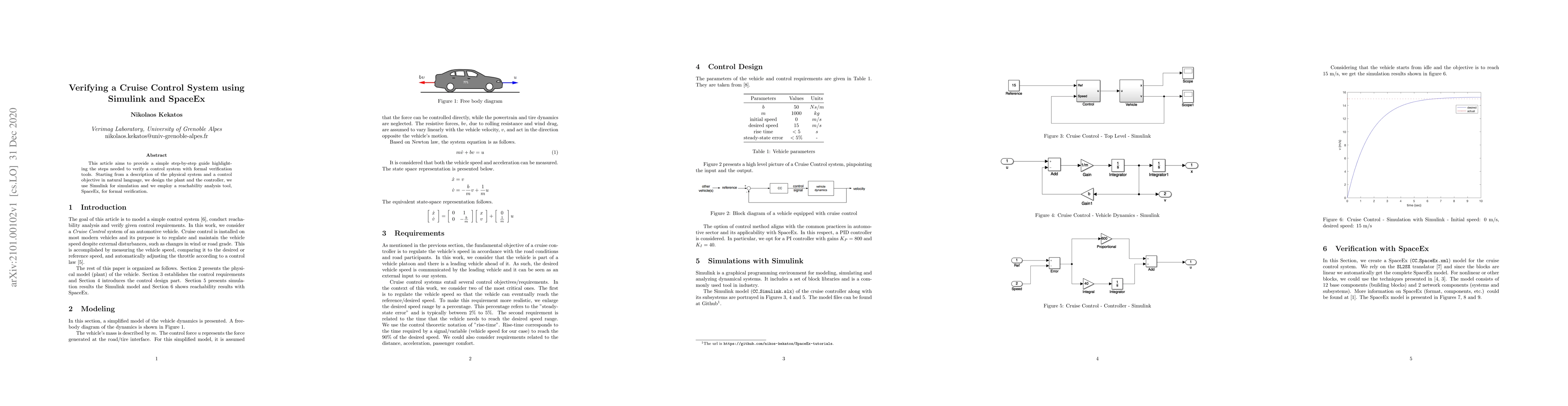A step-by-step guide to verifying a control system using Simulink and SpaceEx is provided.