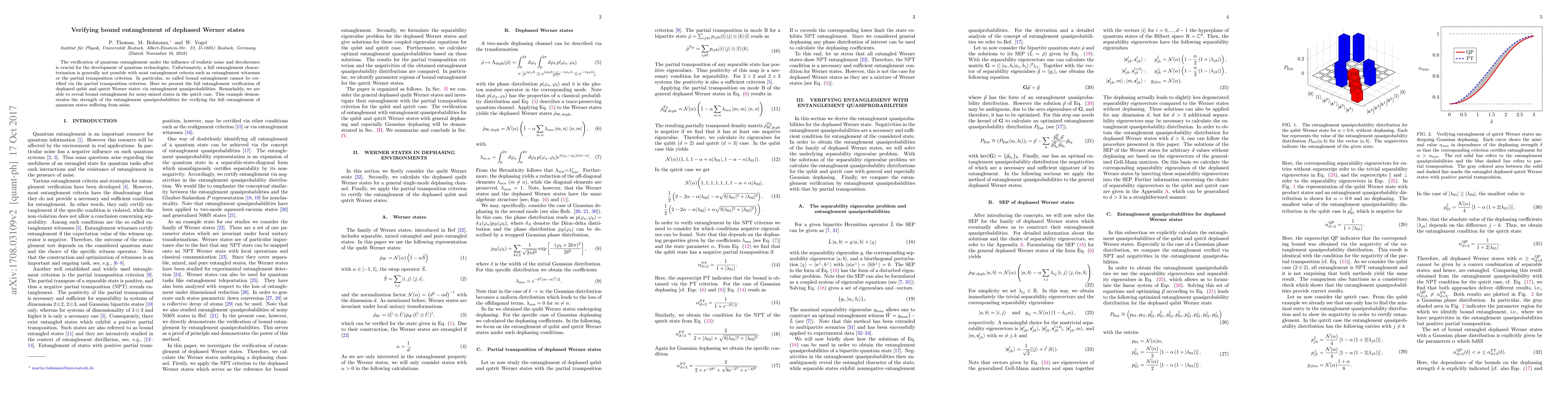 This paper verifies the presence of bound entanglement in dephased Werner states using entanglement quasiprobabilities, showing that this method can detect full entanglement even in noisy mixed states, particularly in the qutrit case. This highlights the robustness of entanglement quasiprobabilities in characterizing quantum states under realistic noise conditions.