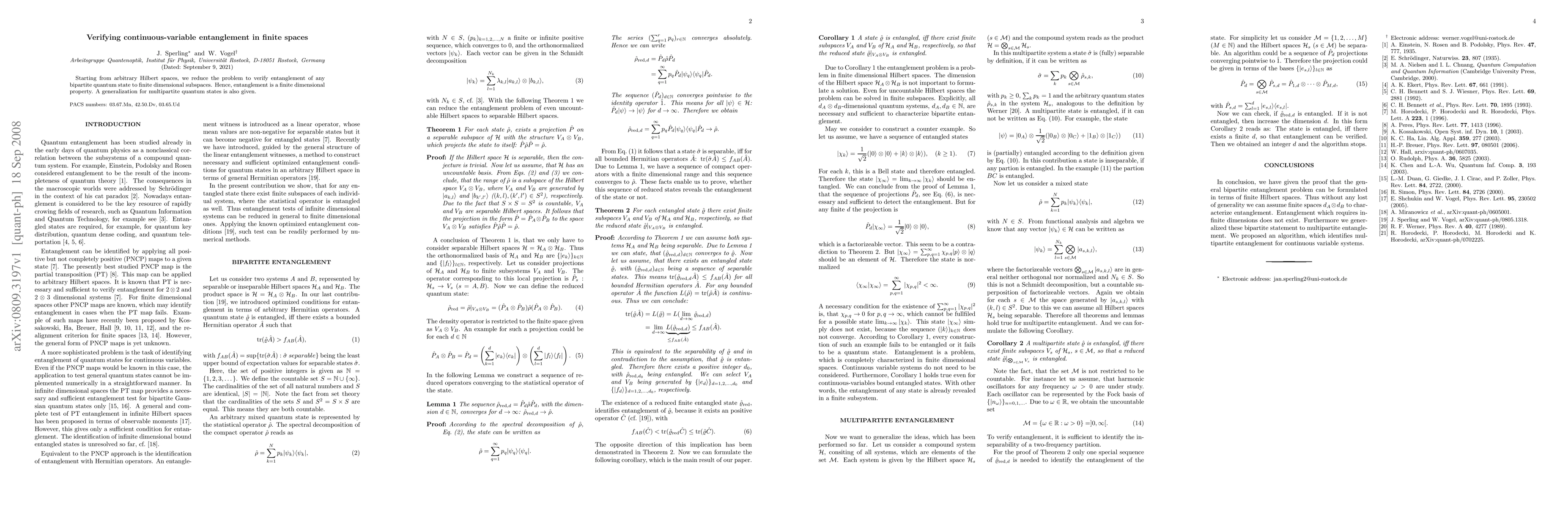 Starting from arbitrary Hilbert spaces, we reduce the problem to verify entanglement of any bipartite quantum state to finite dimensional subspaces. Hence, entanglement is a finite dimensional property. A generalization for multipartite quantum states is also given.