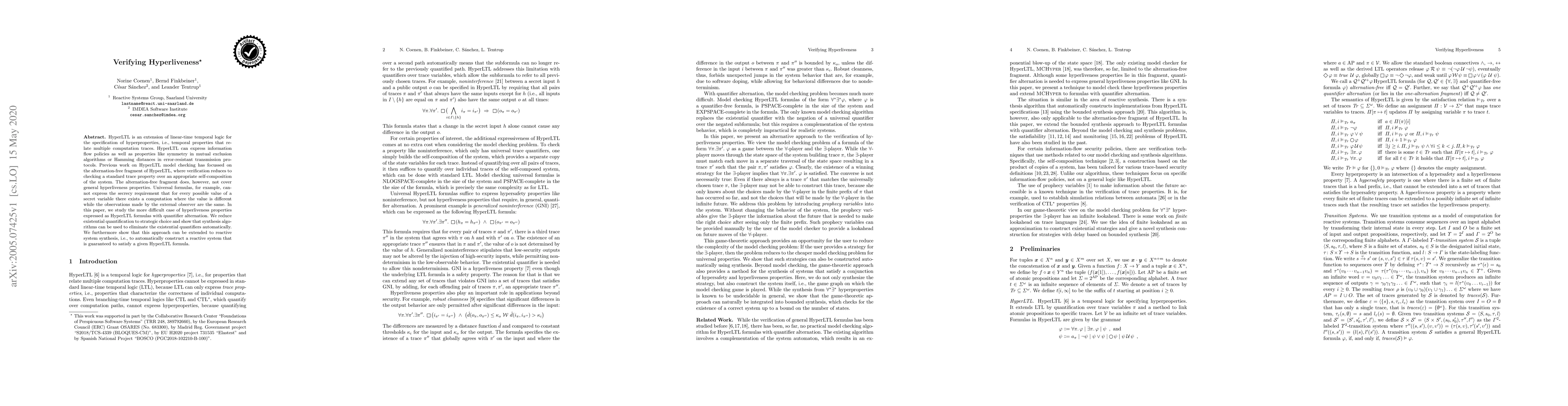 This paper investigates the verification of hyperliveness properties in HyperLTL, addressing the limitations of previous alternation-free model checking. It proposes a method to reduce existential quantification to strategic choice and utilizes synthesis algorithms to automatically eliminate existential quantifiers, thereby extending the capability for reactive system synthesis.