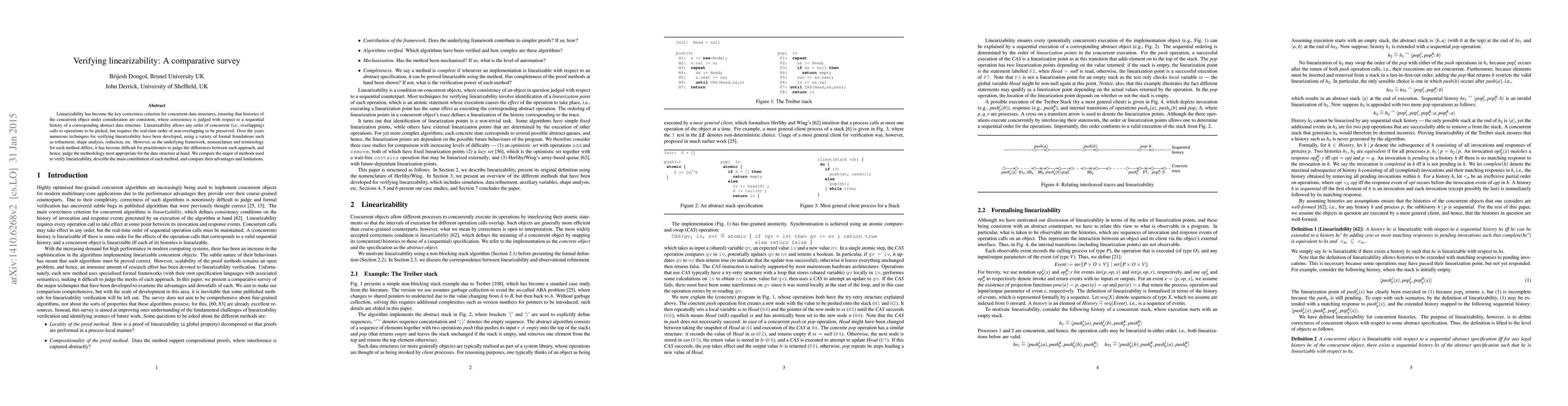 This paper provides a comparative survey of various techniques for verifying linearizability in concurrent data structures, highlighting their main contributions, advantages, and limitations to aid practitioners in selecting the most appropriate method for their specific data structure.