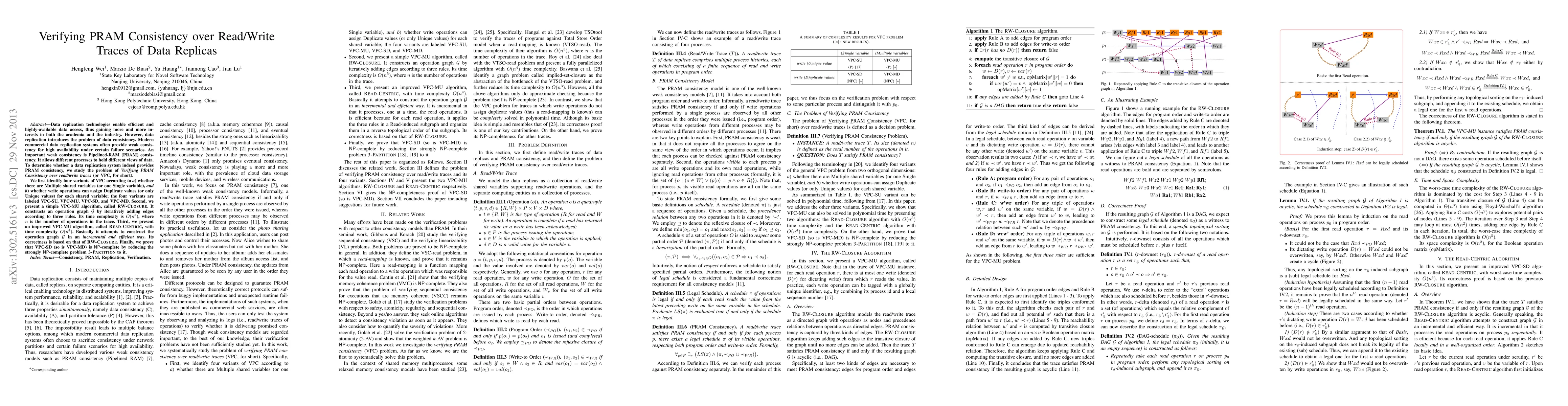 Researchers developed algorithms to verify Pipelined-RAM consistency in data replication systems, improving high availability under failure scenarios. Their work includes two efficient algorithms with time complexities of $O(n^4)$ and a proof that certain variants of consistency checking are NP-complete.
