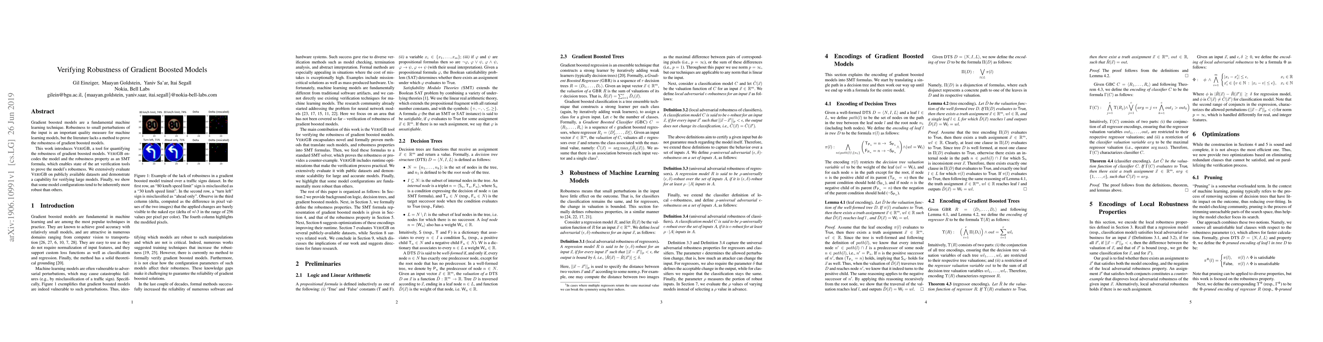 This paper introduces VeriGB, a tool for verifying the robustness of gradient boosted models by encoding them as SMT formulas, enabling state-of-the-art verification tools to prove their robustness. The authors demonstrate VeriGB's effectiveness on public datasets and show that certain model configurations are inherently more robust.