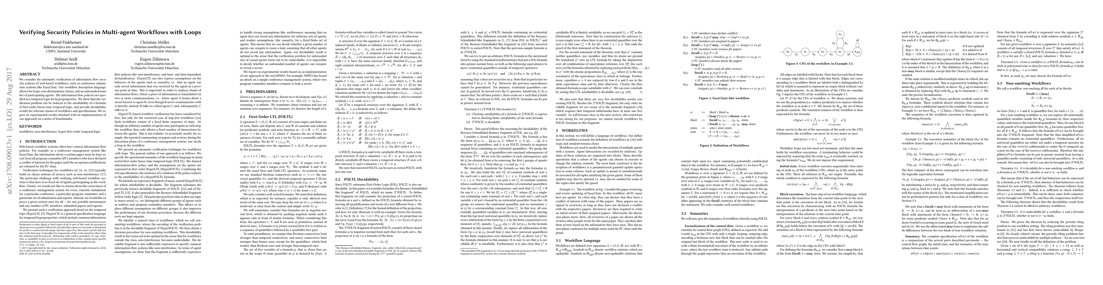 Researchers developed a method to verify security policies in web-based workflows with loops, improving information flow security for conference submission systems like EasyChair. Their approach reduces the verification problem to a logical formula that can be solved using first-order linear-time temporal logic.